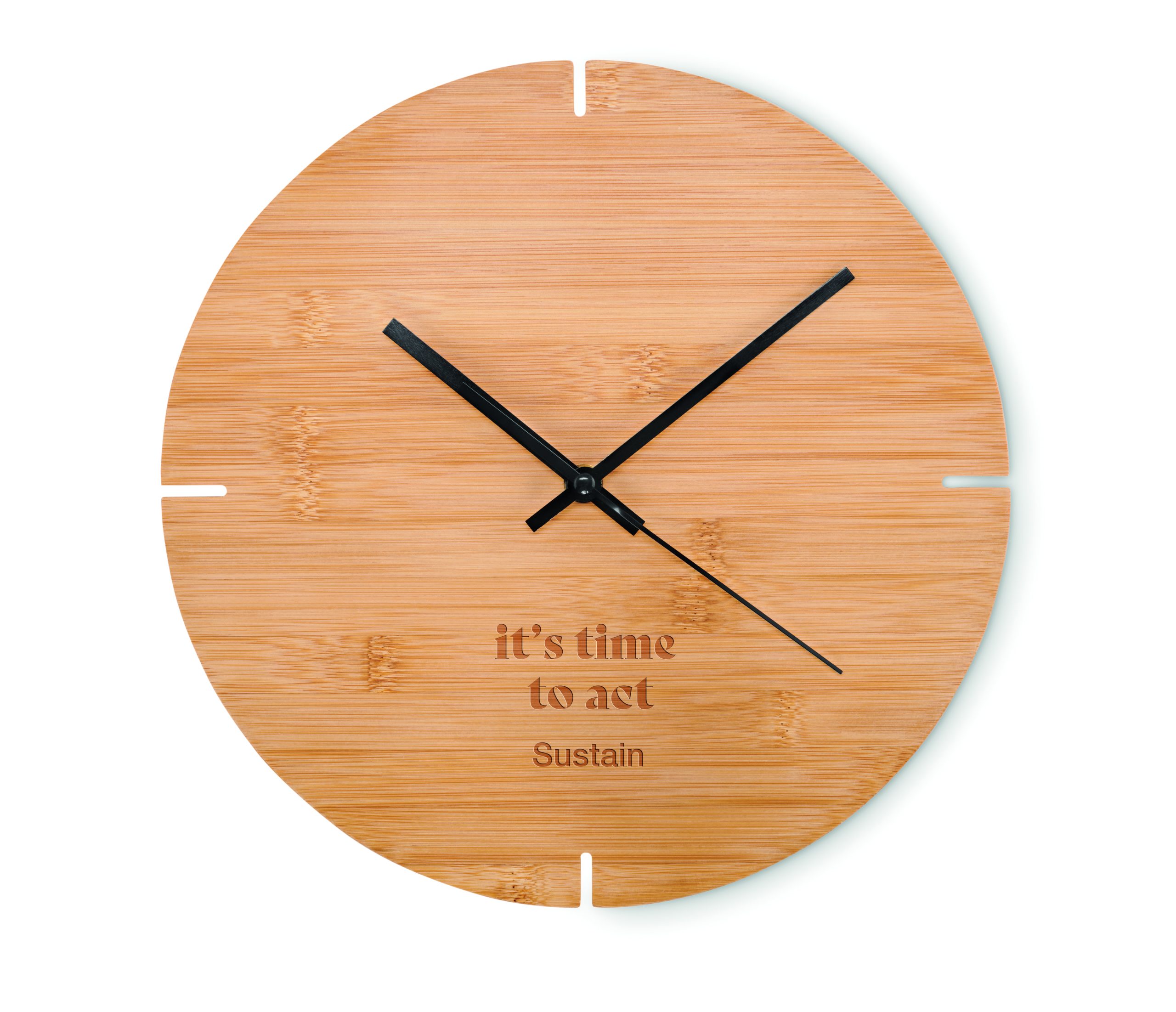 Bambusowy zegar ścienny. Wymagana 1 bateria AA. Bateria nie jest dołączona. Bambus jest produktem naturalnym, dlatego mogą wystąpić nieznaczne różnice w kolorze, wzorze i rozmiarze.