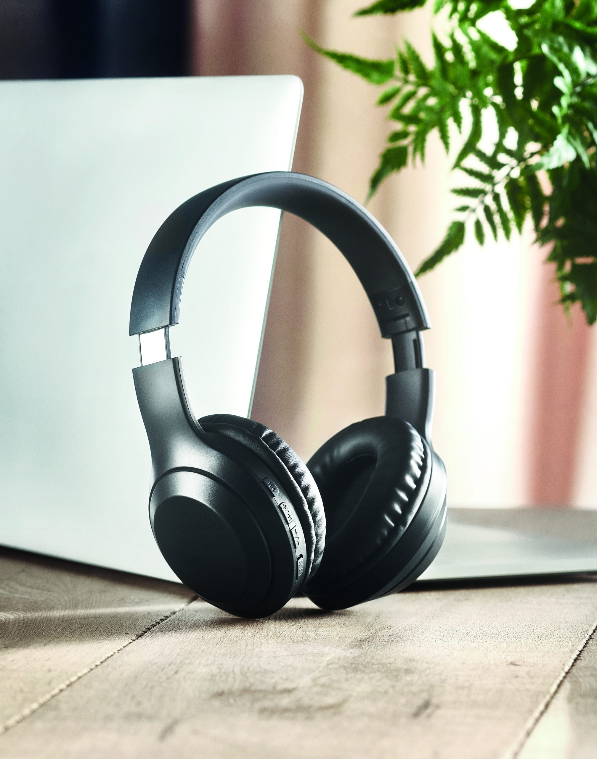 5.0 bezprzewodowa składana słuchawka z ABS. Pakowane w 140 gr/m2 bawełnianą torebkę. Ładowalny akumulator Li-Pol 200 mAh. Wbudowana funkcja głośnomówiąca i mikrofon. Czas odtwarzania ok.4 godziny. W komplecie kabel Type-C do ładowania. Zasięg: 10 m.