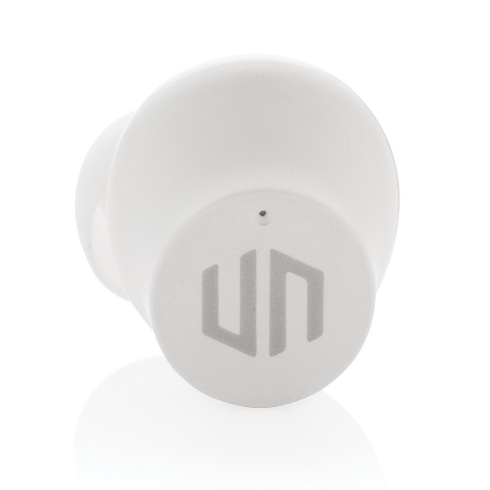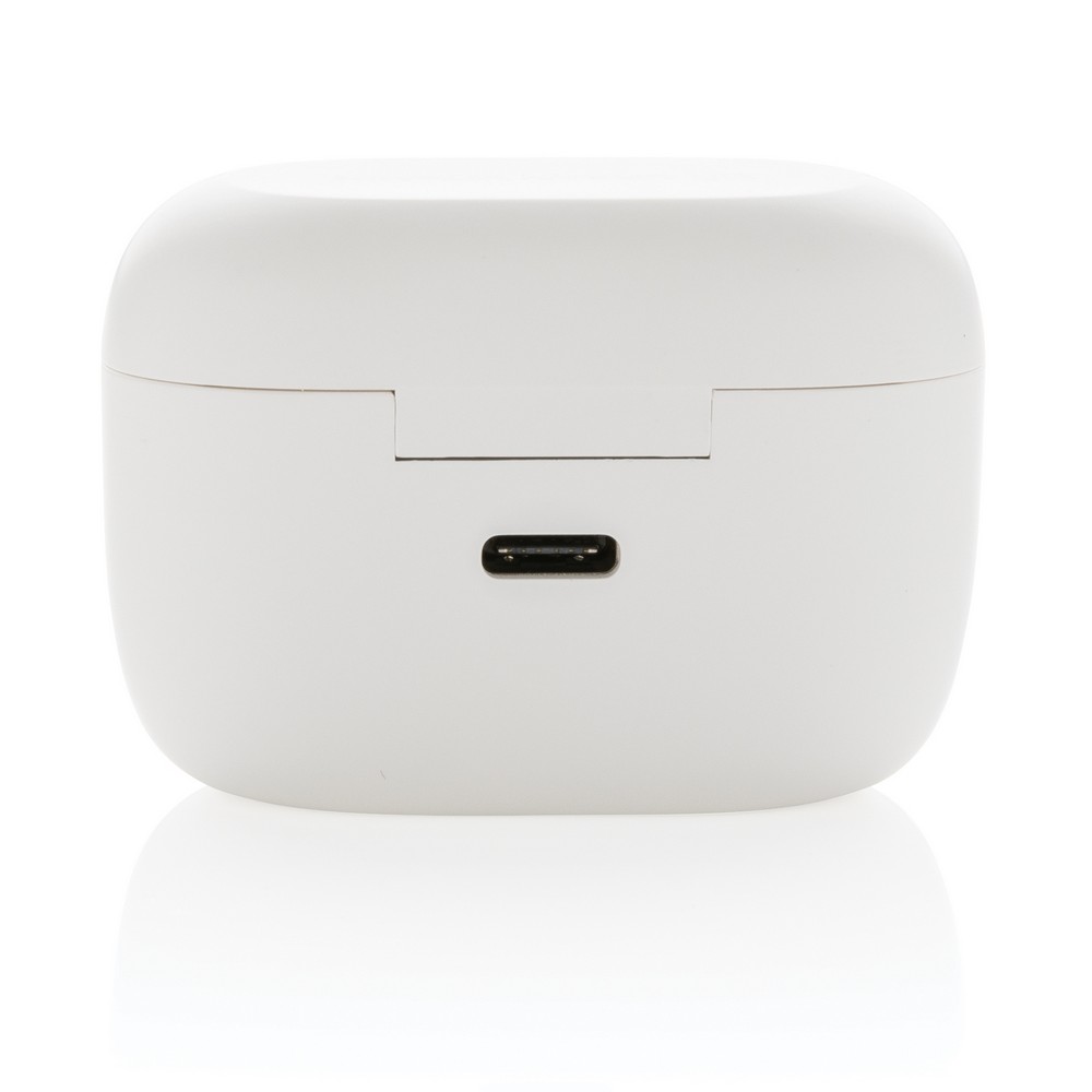Bezprzewodowe słuchawki douszne, mocny i głęboki dźwięk, poziom redukcji szumów do 25 dB, wodoodporne IPX5 (całkowita ochrona przed strumieniem wody płynącej z różnych kierunków z wydajnością do 12,5 litra na minutę), dotykowy panel sterowania, wbudowany mikrofon, funkcja odbierania połączeń, do 5 godzin odtwarzania na jednym ładowaniu, etui ładujące zapewnia 18 godzin odtwarzania, nie zawiera PVC, opakowanie nie zawiera plastiku, ślad węglowy produktu: 1,02 kg CO2
