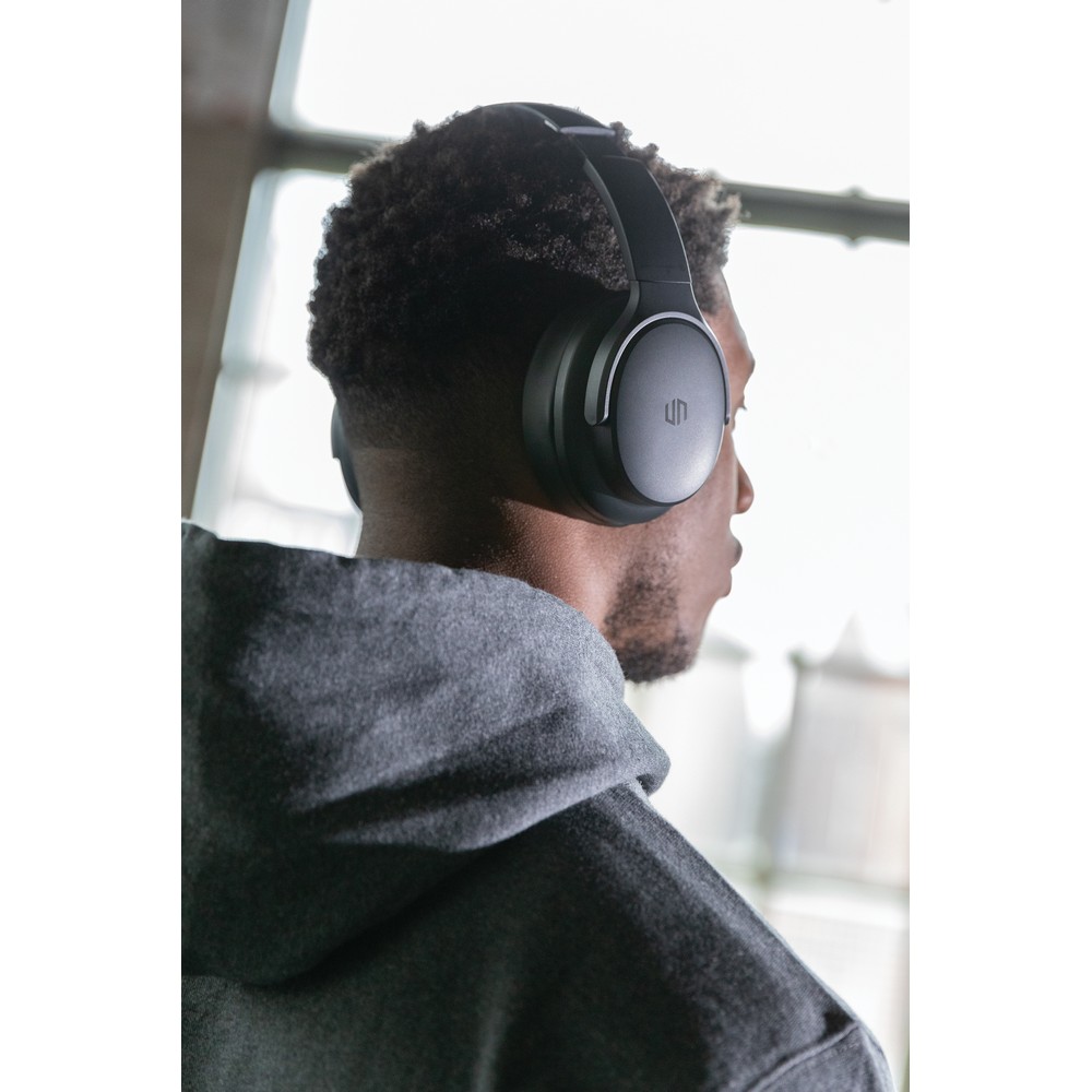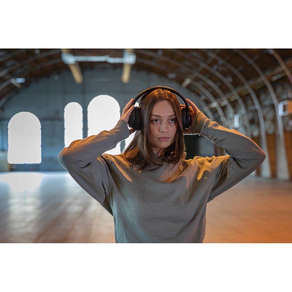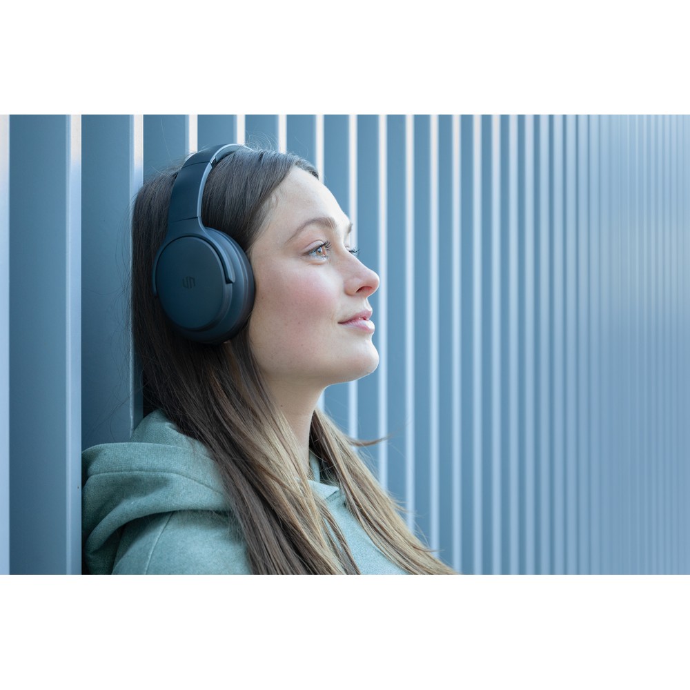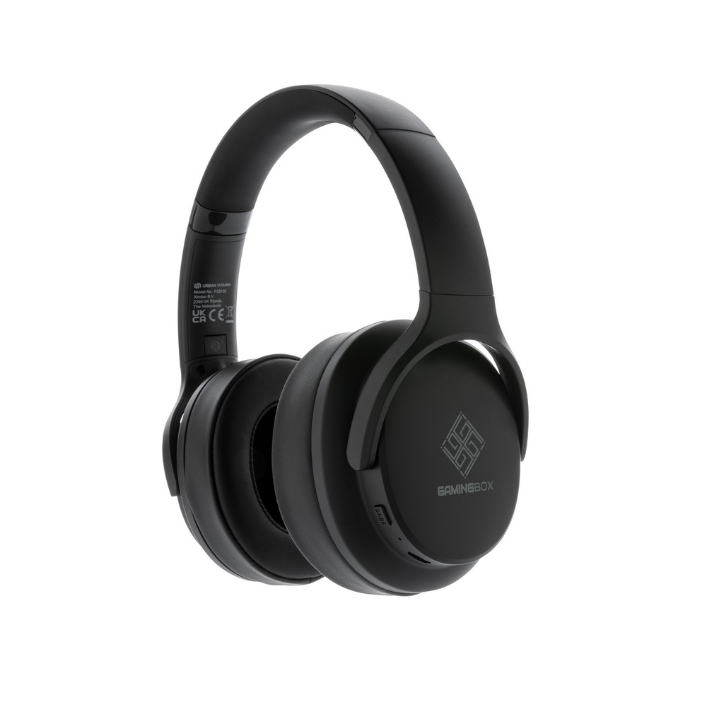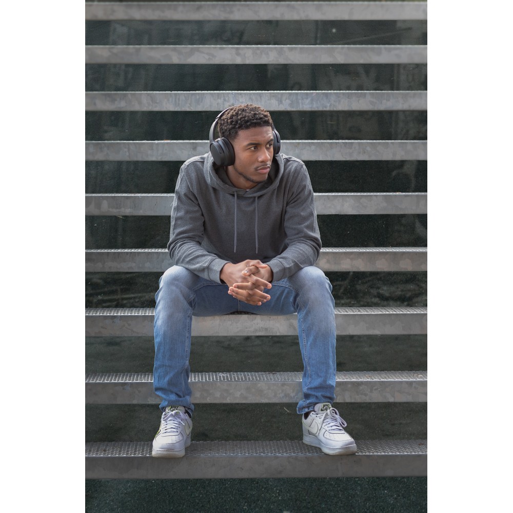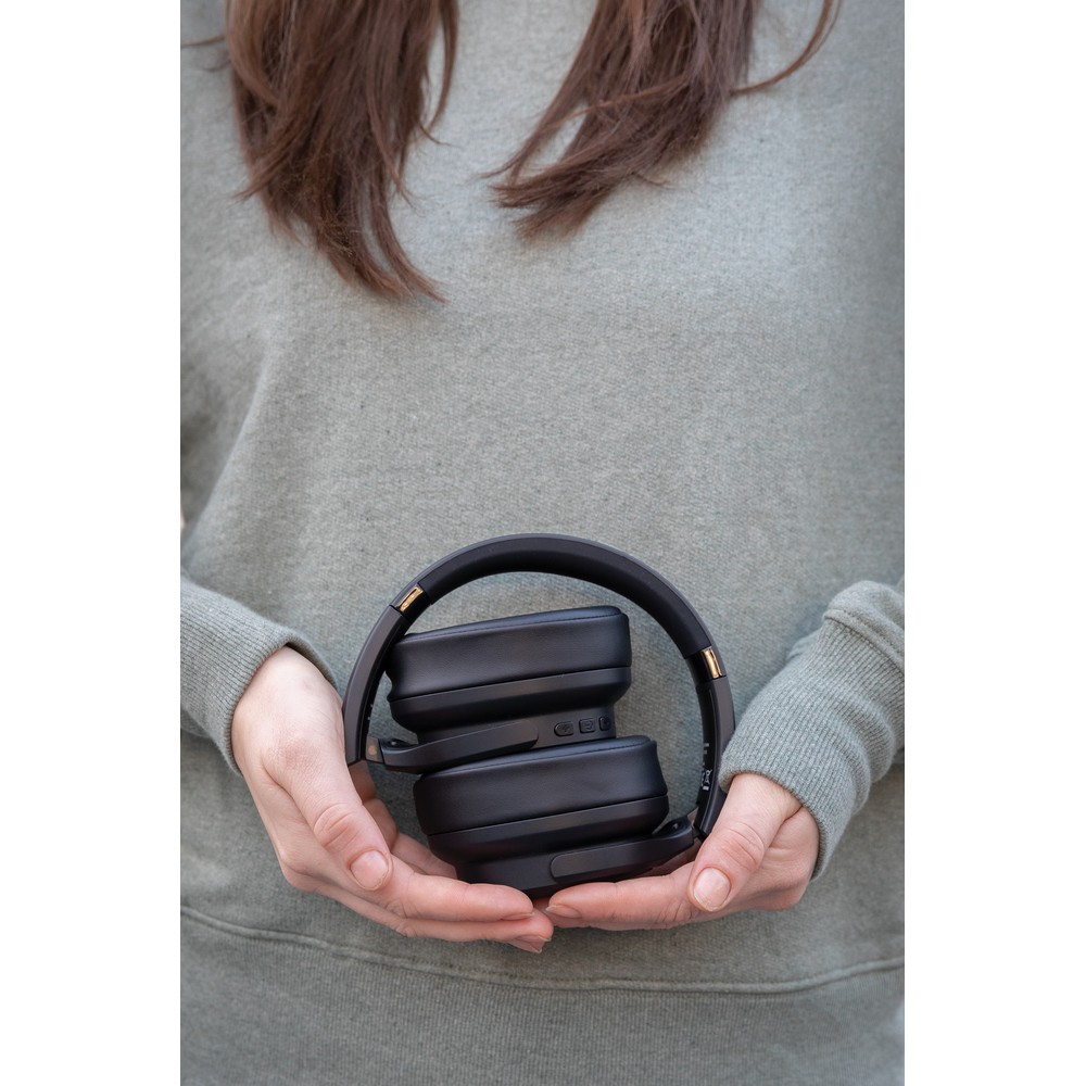 Bezprzewodowe słuchawki nauszne, składane, wykonane z ABS z recyklingu z certyfikatem RCS, całkowita zawartość materiałów z recyklingu obliczona na podstawie wagi całkowitej przedmiotu: 63%, wbudowany mikrofon, funkcja odbierania połączeń, do 48 godzin odtwarzania na jednym ładowaniu, nie zawiera PVC, opakowanie o zmniejszonej zawartości plastiku, nie zawiera PVC, ślad węglowy produktu: 1,95 kg CO2
