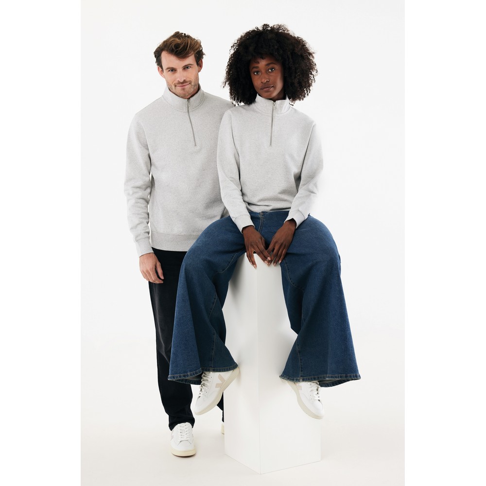 Bluza, unisex, długie rękawy, nowoczesny krój, kołnierz zapinany na zamek błyskawiczy, wykonana w 30% z bawełny z recyklingu i w 70% z bawełny organicznej o gramaturze 300 g/m2, posiada wbudowany znacznik AWARE™, który potwierdza wykorzystanie materiałów z recyklingu, posiada kod QR na metce, który prowadzi do cyfrowego paszportu produktu, 2% wpływów z każdego sprzedanego produktu jest przekazywane na rzecz Water.org