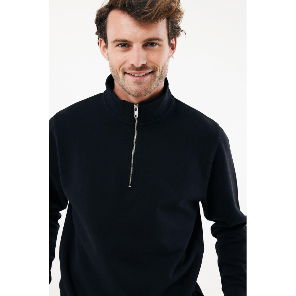 Bluza, unisex, długie rękawy, nowoczesny krój, kołnierz zapinany na zamek błyskawiczy, wykonana w 30% z bawełny z recyklingu i w 70% z bawełny organicznej o gramaturze 300 g/m2, posiada wbudowany znacznik AWARE™, który potwierdza wykorzystanie materiałów z recyklingu, posiada kod QR na metce, który prowadzi do cyfrowego paszportu produktu, 2% wpływów z każdego sprzedanego produktu jest przekazywane na rzecz Water.org