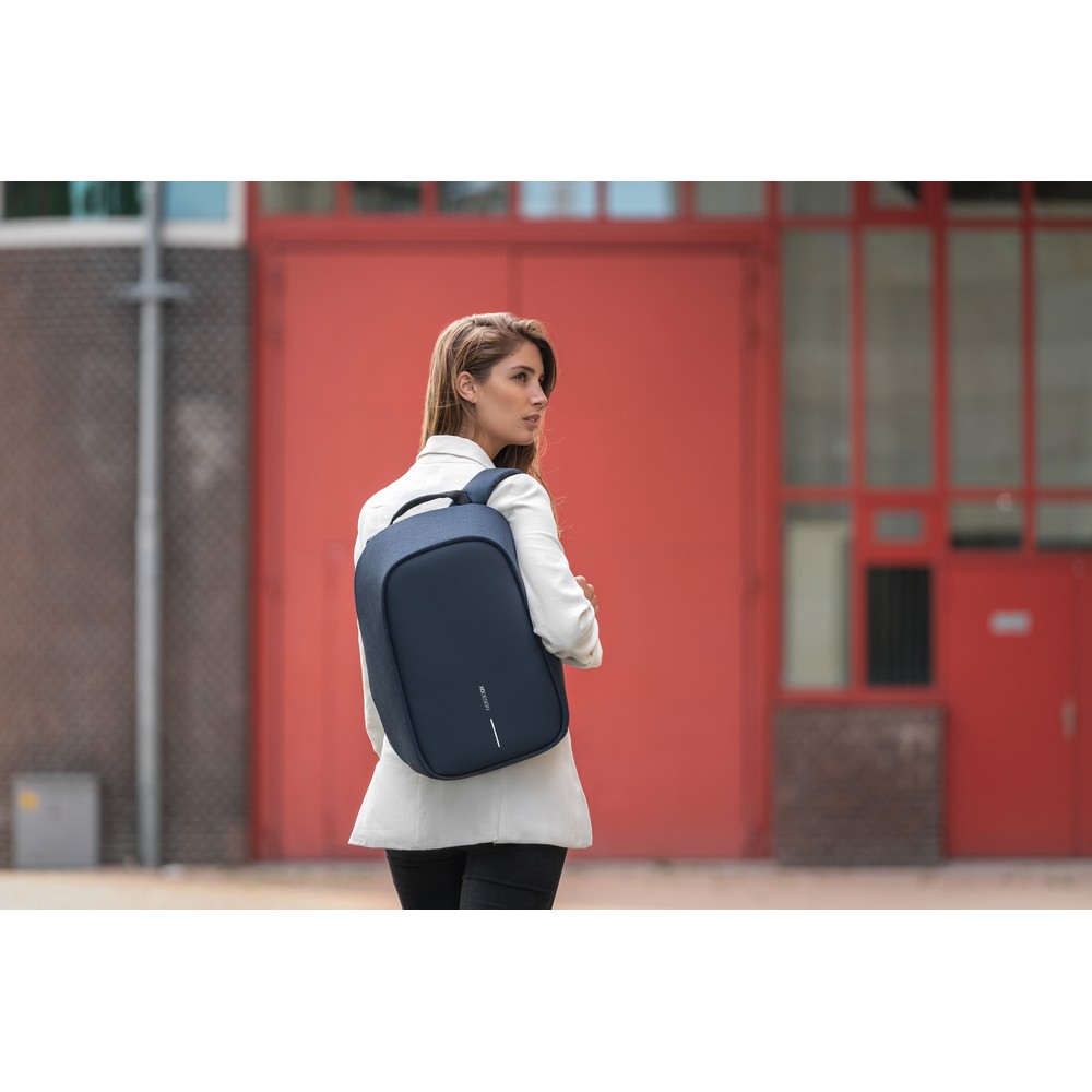 Plecak chroniący przed kieszonkowcami Bobby Hero Small, wodoodporny i odporny na przecięcia materiał, wykonany z przyjaznego środowisku materiału RPET, ukryte zamki i kieszenie, wewnątrz miękkie przegrody na laptopa do 13,3″ i tablet do 12,9″, zintegrowany port USB do ładowania telefonów (power-bank nie jest dołączony), odblaskowe paski zwiększające widoczność, pasek do zamocowania na walizce, wzór zastrzeżony®, ślad węglowy produktu: 6,28 kg CO2