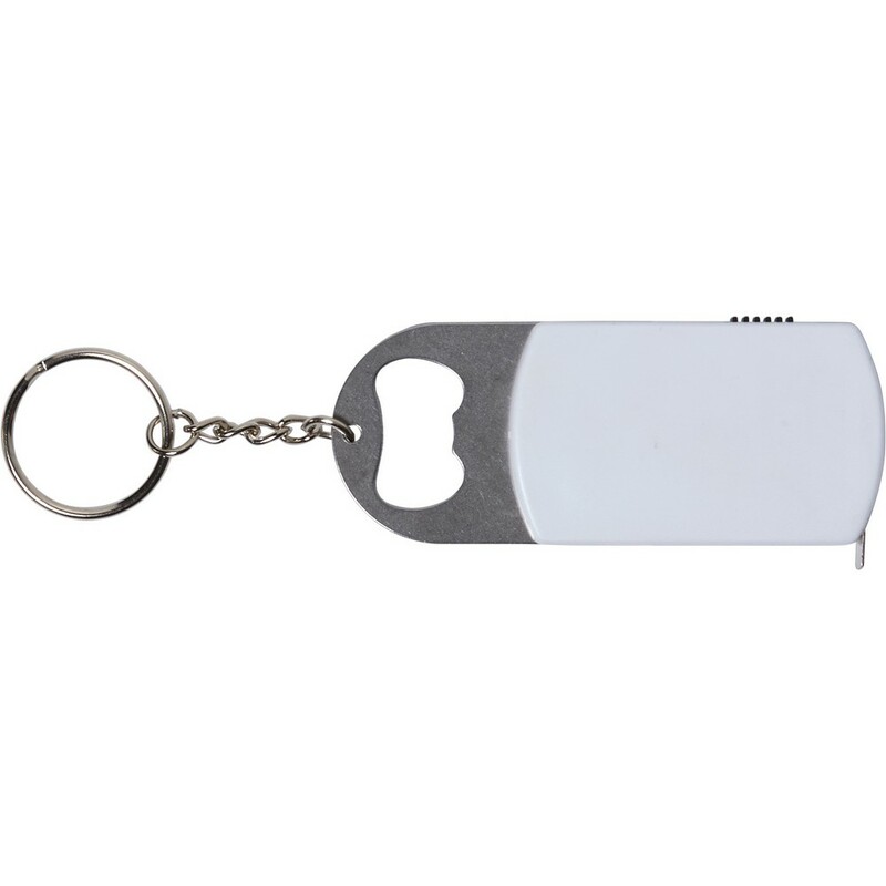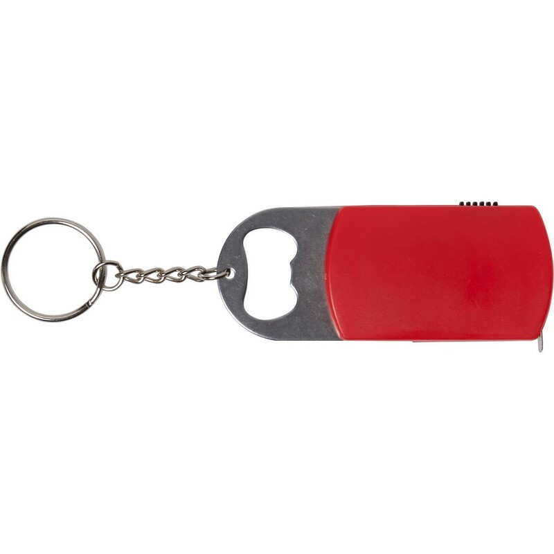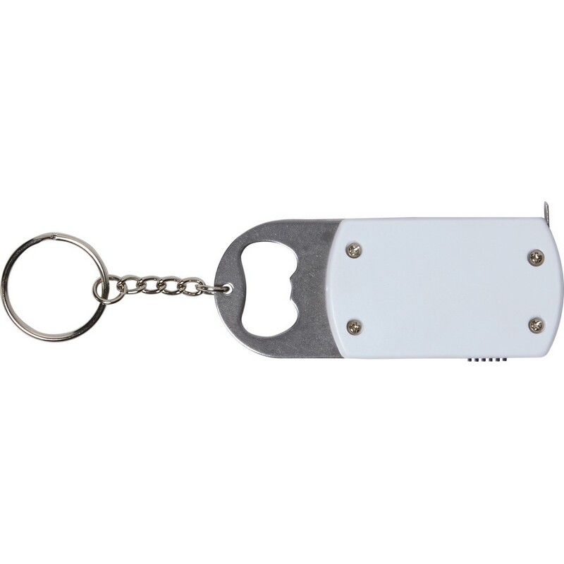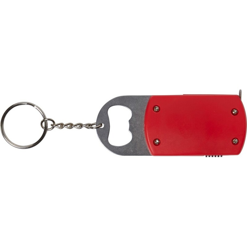 Brelok do kluczy, lampka LED, otwieracz do butelek, miara 1m