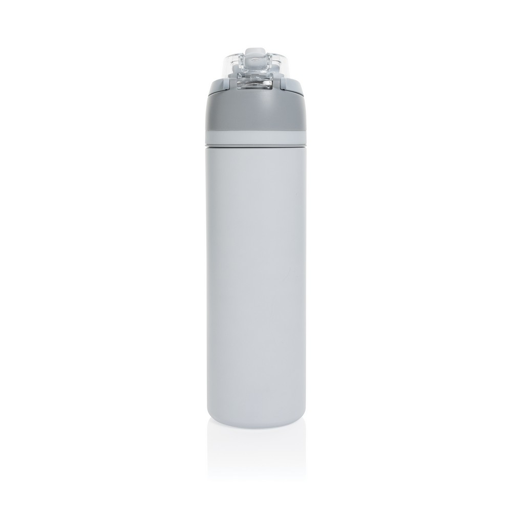 Butelka sportowa 700 ml, posiada wbudowaną słomkę, produkt wykonany ze stali pochodzącej z recyklingu z certyfikatem RCS, zapakowana w pudełko upominkowe FSC