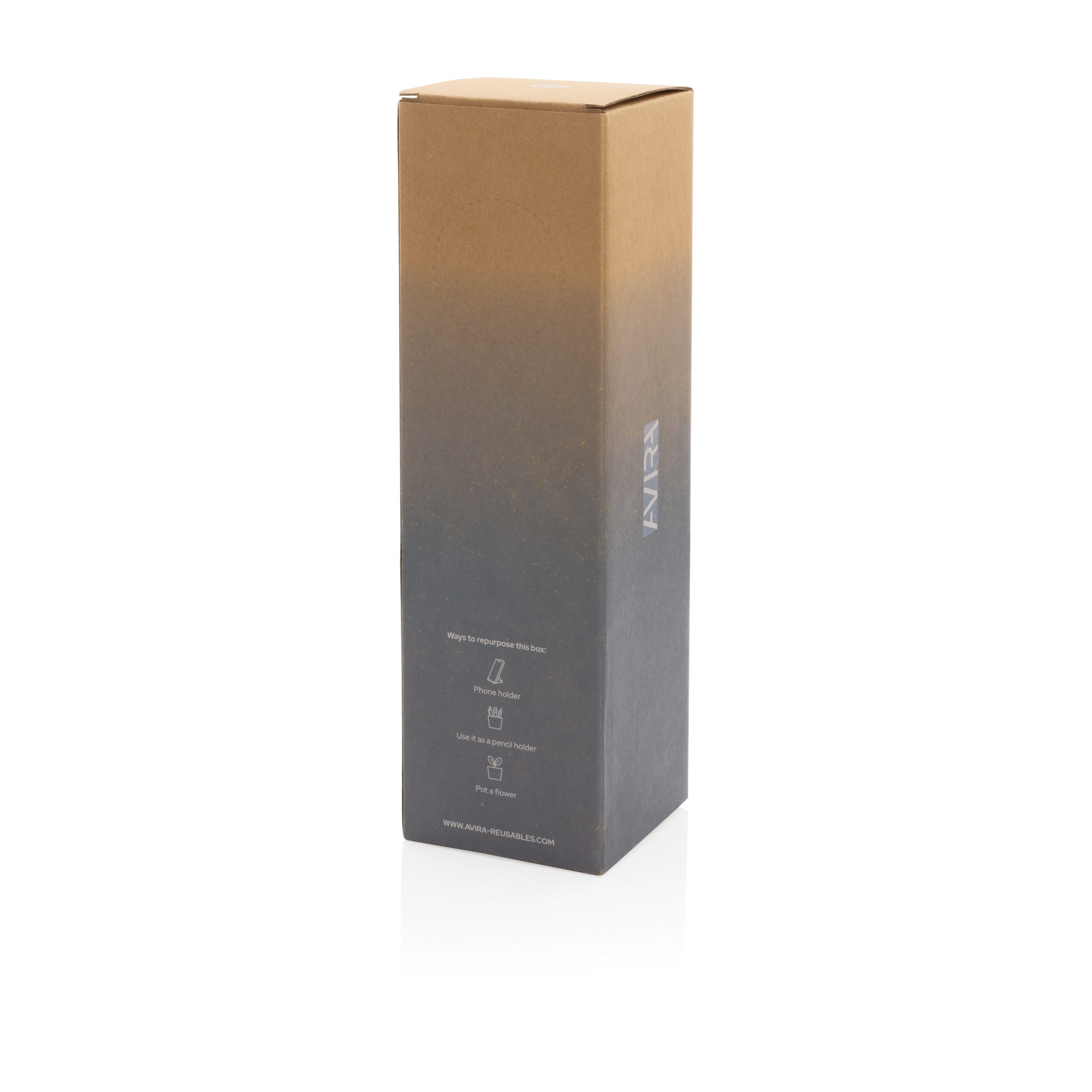 Butelka termiczna 1000 ml, wykonana ze stali nierdzewnej pochodzącej z recyklingu, całkowita zawartość materiałów z recyklingu obliczona na podstawie wagi całkowitej przedmiotu: 97%, podwójne ścianki z próżnią pomiędzy, pasuje do większości uchwytów samochodowych, w pudełku z papieru kraftowego z certyfikatem FSC®, pudełko można wykorzystać jako stojak na telefon lub doniczkę, utrzymuje temperaturę napojów gorących do 20 godzin oraz zimnych do 20 godzin