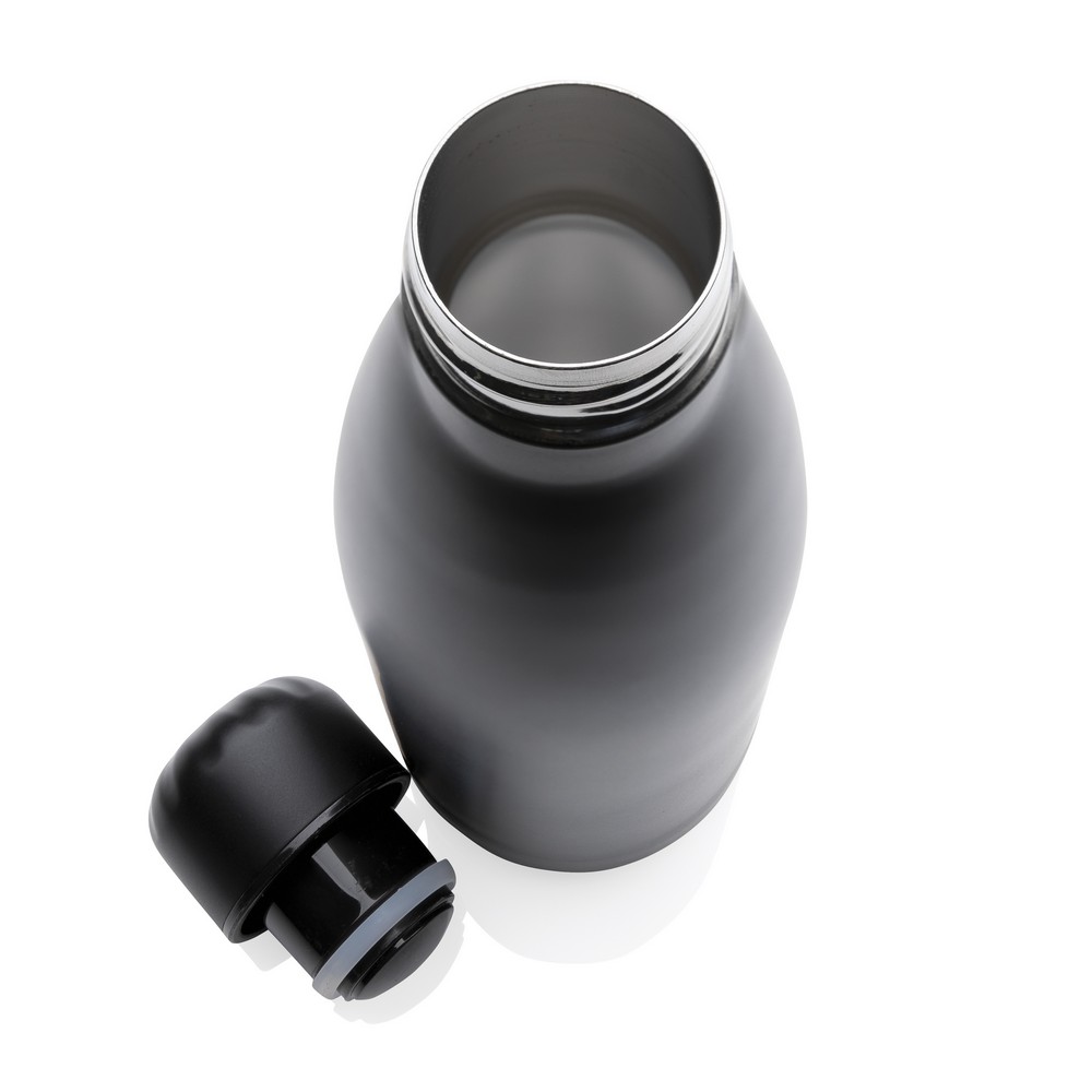 Butelka termiczna 500 ml, podwójne ścianki ze stali nierdzewnej z próżnią pomiędzy, pasuje do większości uchwytów na kubek, utrzymuje temperaturę napojów gorących do 20 godzin oraz zimnych do 15 godzin