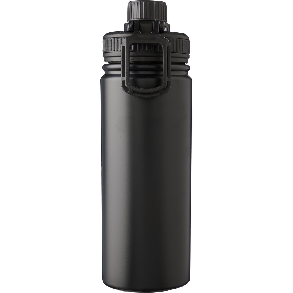 Butelka termiczna 500 ml, posiada podwójne ścianki ze stali nierdzewnej z próżnią między ściankami dzięki czemu zachowuje funkcje termosu i długo utrzymuje temperaturę nie oddając jej na zewnątrz, zakręcana wylewka we wieczku, uchwyt ułatwiający przenoszenie lub przypięcie do innego przedmiotu, zapakowana w brązowy kartonik, produkt wykonany ze stali nierdzewnej i PU