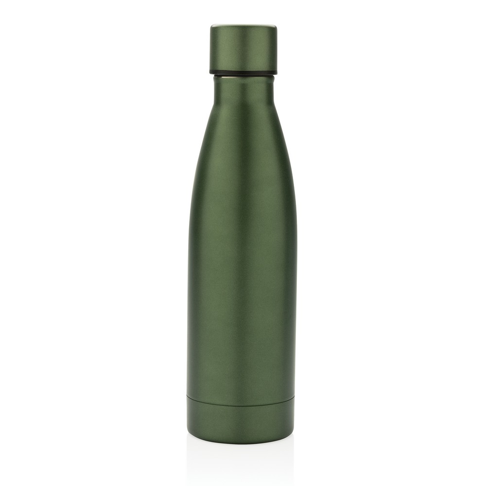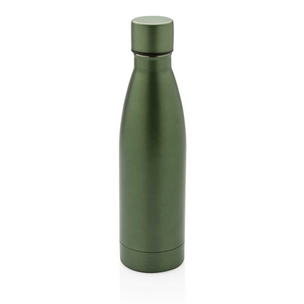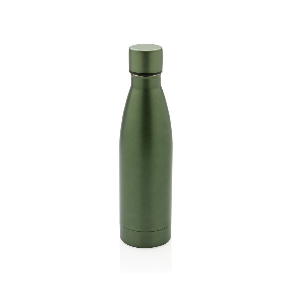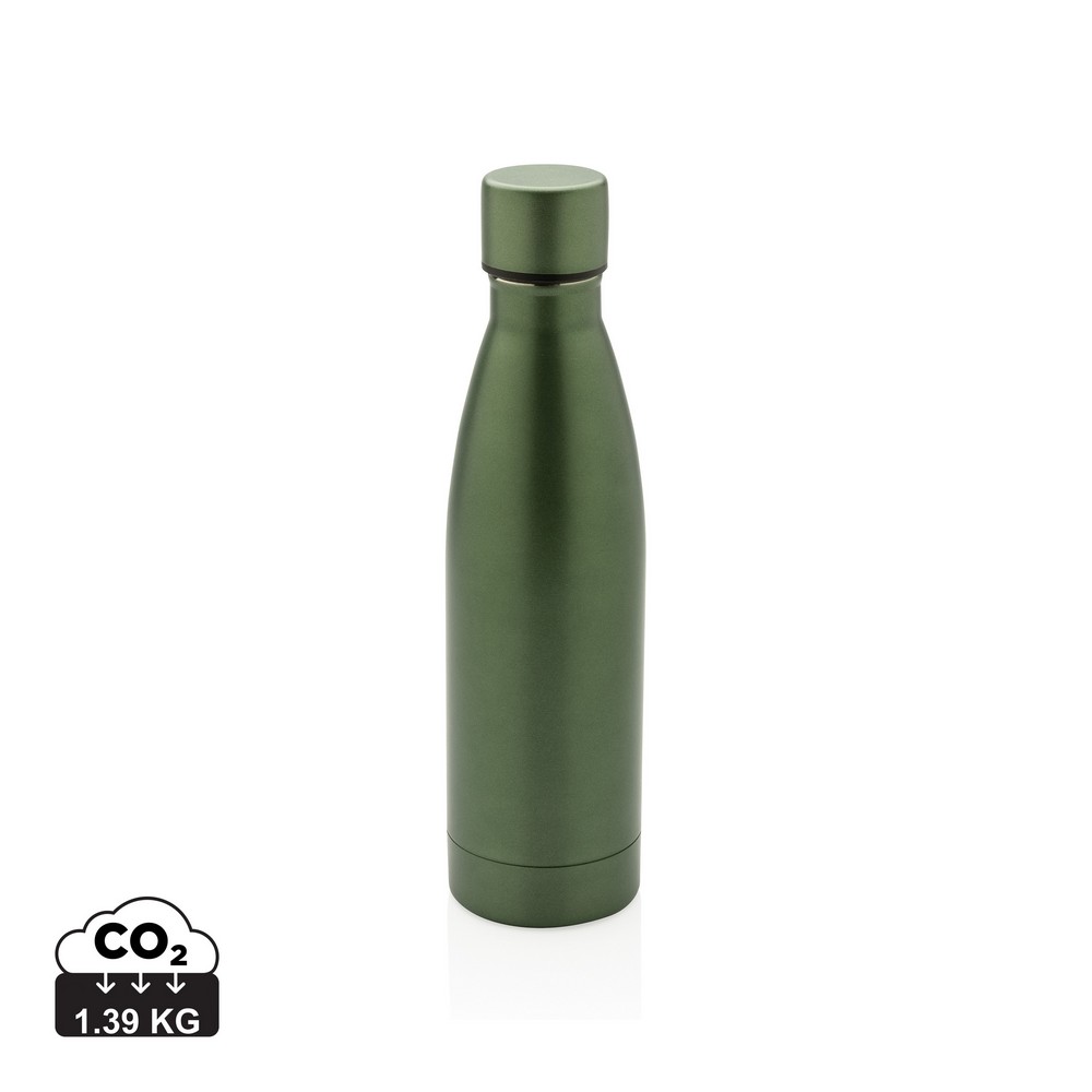 Butelka termiczna 500 ml, podwójne ścianki z próżnią pomiędzy, wykonana ze stali nierdzewnej z recyklingu z certyfikatem RCS (Recycled Claim Standard) który gwarantuje, że wykorzystane materiały pochodzą z recyklingu, całkowita zawartość materiału z recyklingu obliczona w oparciu o wagę całkowitą przedmiotu: 93%, pasuje do większości uchwytów samochodowych, w pudełku z papieru kraftowego z certyfikatem FSC® (Forest Stewardship Council), utrzymuje temperaturę napojów gorących do 20 godzin oraz zimnych do 15 godzin