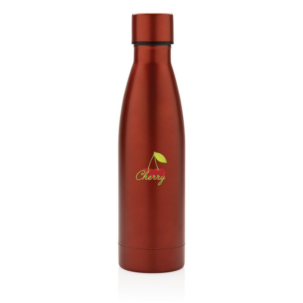 Butelka termiczna 500 ml, podwójne ścianki z próżnią pomiędzy, wykonana ze stali nierdzewnej z recyklingu z certyfikatem RCS (Recycled Claim Standard) który gwarantuje, że wykorzystane materiały pochodzą z recyklingu, całkowita zawartość materiału z recyklingu obliczona w oparciu o wagę całkowitą przedmiotu: 93%, pasuje do większości uchwytów samochodowych, w pudełku z papieru kraftowego z certyfikatem FSC® (Forest Stewardship Council), utrzymuje temperaturę napojów gorących do 20 godzin oraz zimnych do 15 godzin