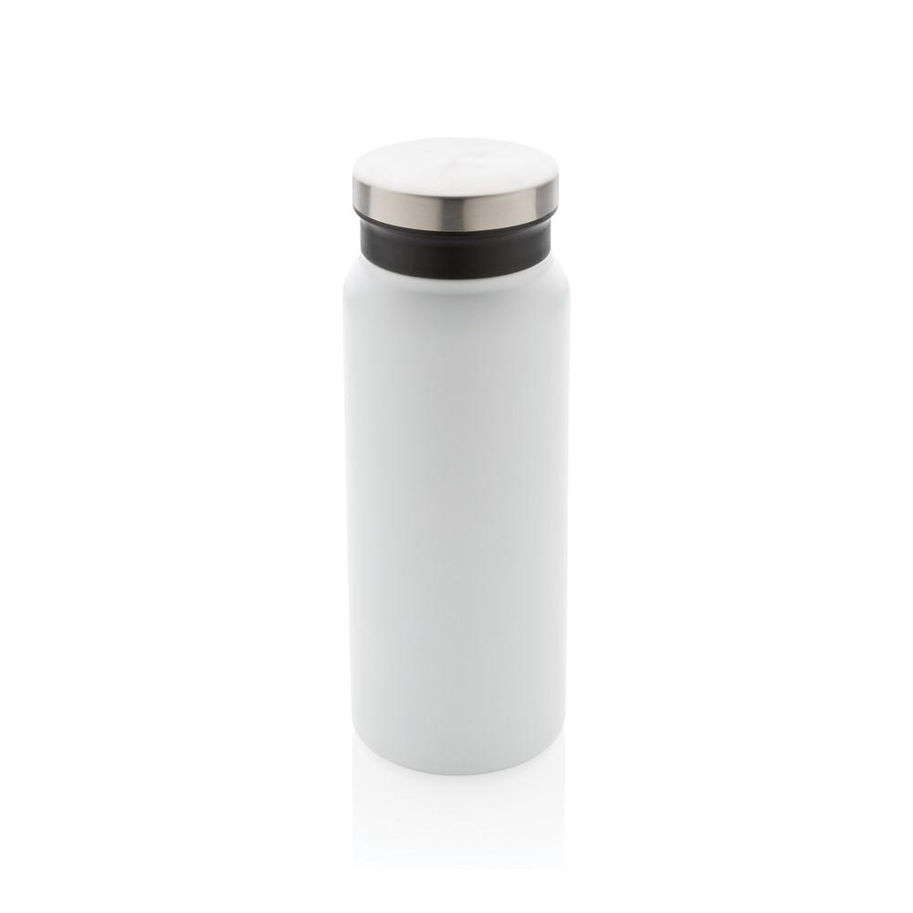 Butelka termiczna 600 ml, podwójne ścianki z próżnią pomiędzy, szczelna, szeroki otwór ułatwiający mycie i napełnianie, wykonana ze stali nierdzewnej z recyklingu z certyfikatem RSC (Recycled Claim Standard) który gwarantuje, że wykorzystane materiały pochodzą z recyklingu, całkowita zawartość materiału z recyklingu obliczona w oparciu o wagę całkowitą przedmiotu: 81%, w pudełku z papieru kraftowego z certyfikatem FSC® (Forest Stewardship Council), utrzymuje temperaturę napojów gorących do 20 godzin oraz zimnych do 15 godzin