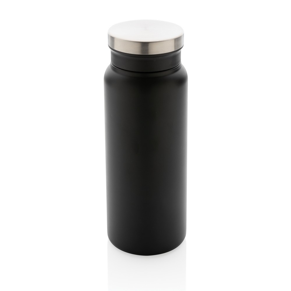 Butelka termiczna 600 ml, podwójne ścianki z próżnią pomiędzy, szczelna, szeroki otwór ułatwiający mycie i napełnianie, wykonana ze stali nierdzewnej z recyklingu z certyfikatem RSC (Recycled Claim Standard) który gwarantuje, że wykorzystane materiały pochodzą z recyklingu, całkowita zawartość materiału z recyklingu obliczona w oparciu o wagę całkowitą przedmiotu: 81%, w pudełku z papieru kraftowego z certyfikatem FSC® (Forest Stewardship Council), utrzymuje temperaturę napojów gorących do 20 godzin oraz zimnych do 15 godzin