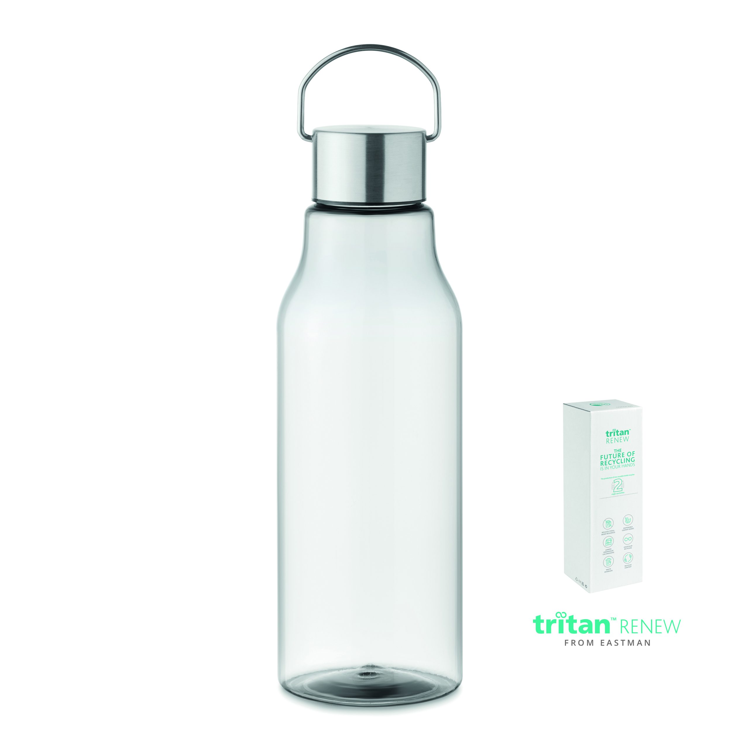 Butelka do picia z materiału Tritan Renew™, który nie zawiera BPA, z zakrętką z uchwytem ze stali nierdzewnej. Szczelna. Pojemność: 800 ml. Ten produkt powstał w 50% z odpadów plastikowych przy użyciu certyfikowanego bilansu masy ISCC.