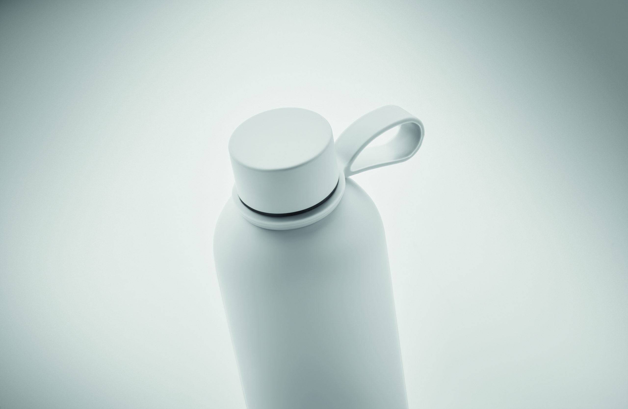 Dwuścienna butelka z izolacją próżniową z recyklingowanej stali nierdzewnej (90% z recyklingowanej stali nierdzewnej i 10% ze stali nierdzewnej) z gumowym wykończeniem i silikonowym uchwytem. Pojemność: 500 ml.