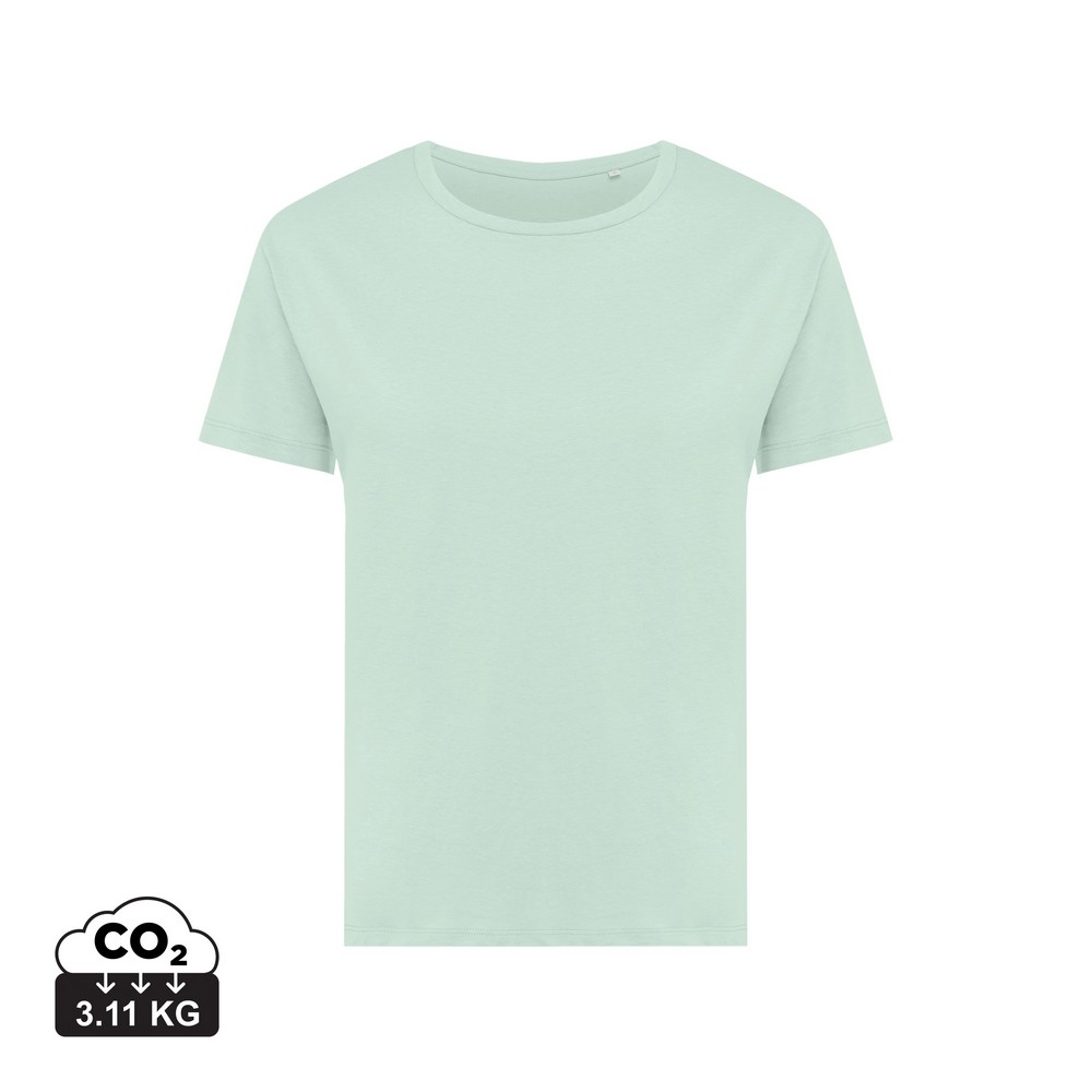Koszulka damska, regularny krój, okrągły dekolt, krótkie rękawy, wykonana w 30% z bawełny z recyklingu i w 70% z bawełny organicznej o gramaturze 160 g/m2, posiada wbudowany znacznik AWARE™, który potwierdza wykorzystanie materiałów z recyklingu, posiada kod QR na metce, który prowadzi do cyfrowego paszportu produktu, 2% wpływów z każdego sprzedanego produktu z kolekcji Impact jest przekazywane na rzecz Water.org, ślad węglowy produktu: 3,11 kg CO2