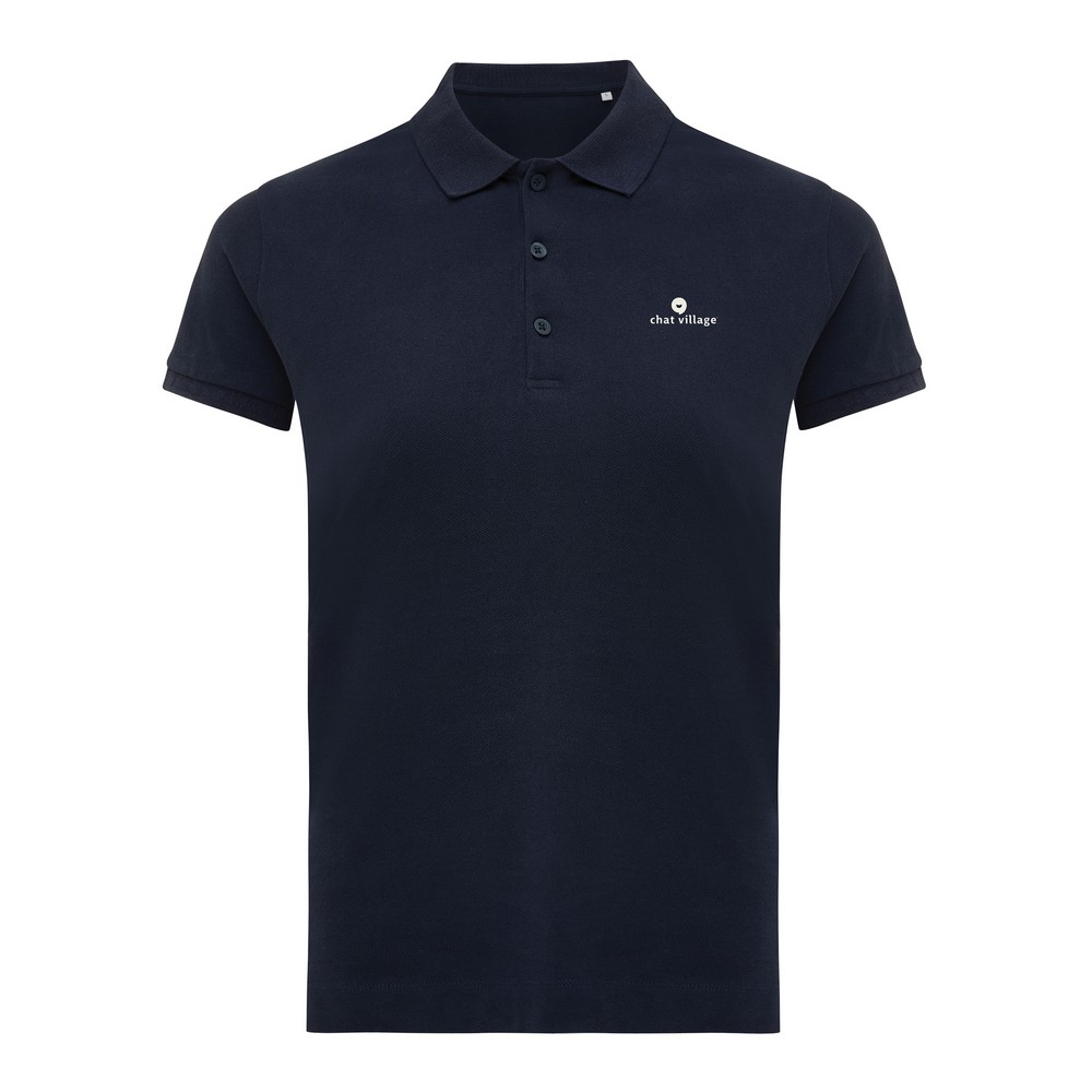 Koszulka polo, damska, zapięcie na 3 guziki, krój medium, splot Pique, krótkie rękawy, wykonana w 50% z bawełny z recyklingu i w 50% z bawełny organicznej o gramaturze 220 g/m2, bez dodatku poliestru, posiada wbudowany znacznik AWARE™, który potwierdza wykorzystanie materiałów z recyklingu, posiada kod QR na metce, który prowadzi do cyfrowego paszportu produktu, 2% wpływów z każdego sprzedanego produktu jest przekazywane na rzecz Water.org