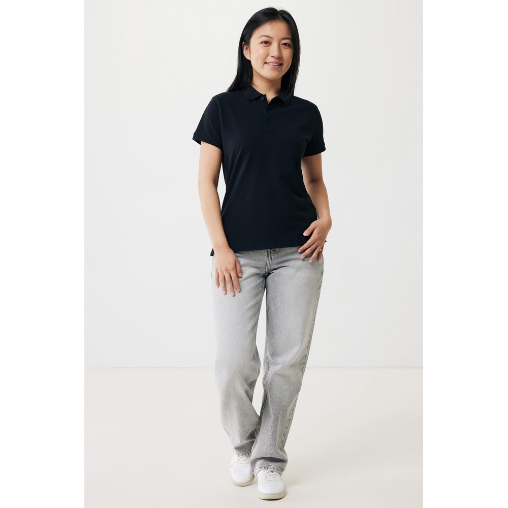 Koszulka polo, damska, zapięcie na 3 guziki, krój medium, splot Pique, krótkie rękawy, wykonana w 50% z bawełny z recyklingu i w 50% z bawełny organicznej o gramaturze 220 g/m2, bez dodatku poliestru, posiada wbudowany znacznik AWARE™, który potwierdza wykorzystanie materiałów z recyklingu, posiada kod QR na metce, który prowadzi do cyfrowego paszportu produktu, 2% wpływów z każdego sprzedanego produktu jest przekazywane na rzecz Water.org
