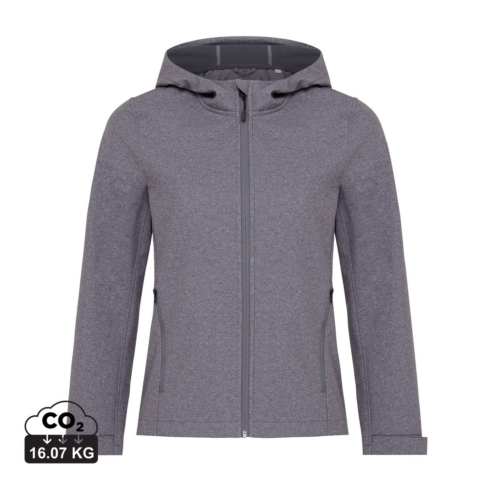 Damska kurtka softshell, wykonana z poliestru z recyklingu, 3 warstwowy materiał o gramaturze 300 g/m2, miękki polar wewnątrz, zapięcia mankietów na rzep, kaptur z regulacją, 2 kieszenie zamykane na zamek, wodoodporna dzięki zastosowanej technologii BIONIC-FINISH® ECO, wiatroszczelna i oddychająca konstrukcja, posiada certyfikat OEKO-TEX® STANDARD 100, posiada znacznik AWARE™, który gwarantuje, że wykorzystane materiały pochodzą z recyklingu, 2% wpływów z każdego sprzedanego produktu z kolekcji Impact jest przekazywane na rzecz Water.org, ślad węglowy produktu: 16,07 kg CO2
