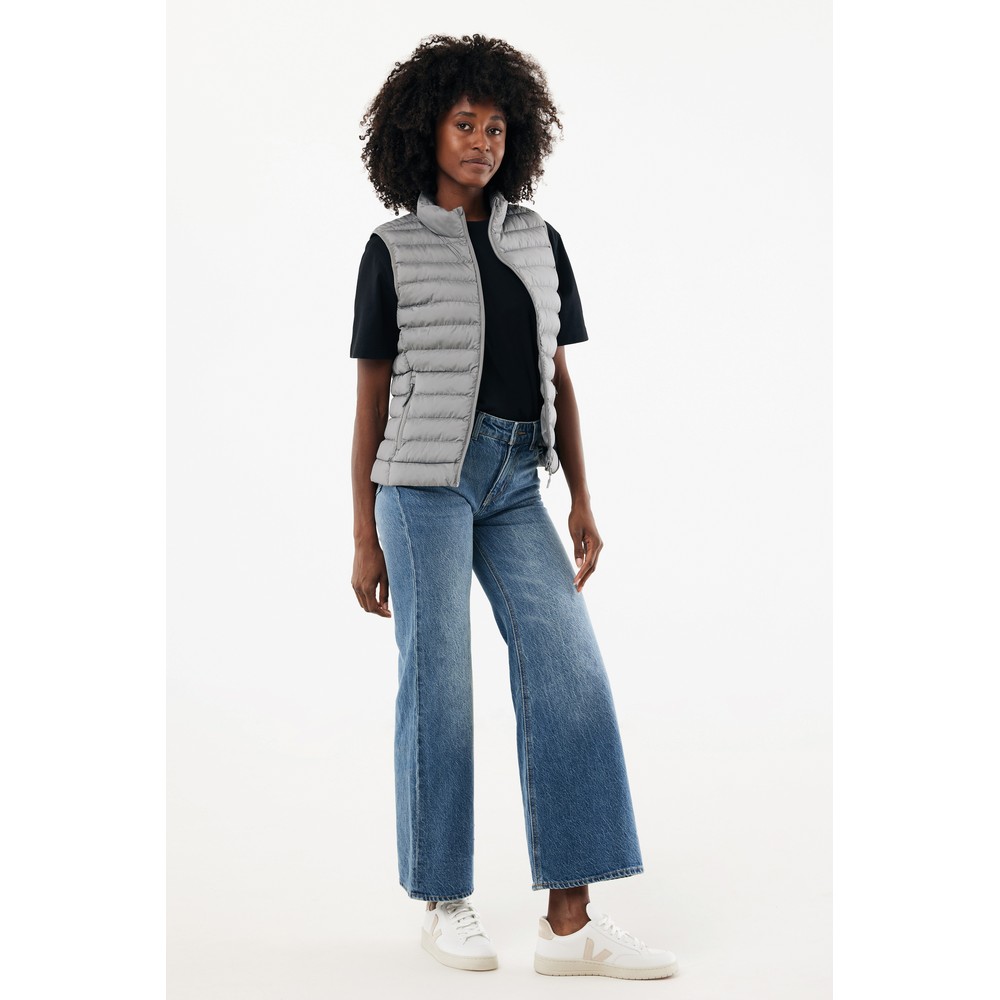 Damski bezrękawnik, kamizelka, wykonany z poliestru pochodzącego w 100% z recyklingu, posiada znacznik AWARE™, który gwarantuje, że wykorzystane materiały pochodzą z recyklingu, 2% wpływów z każdego sprzedanego produktu z kolekcji Impact jest przekazywane na rzecz Water.org