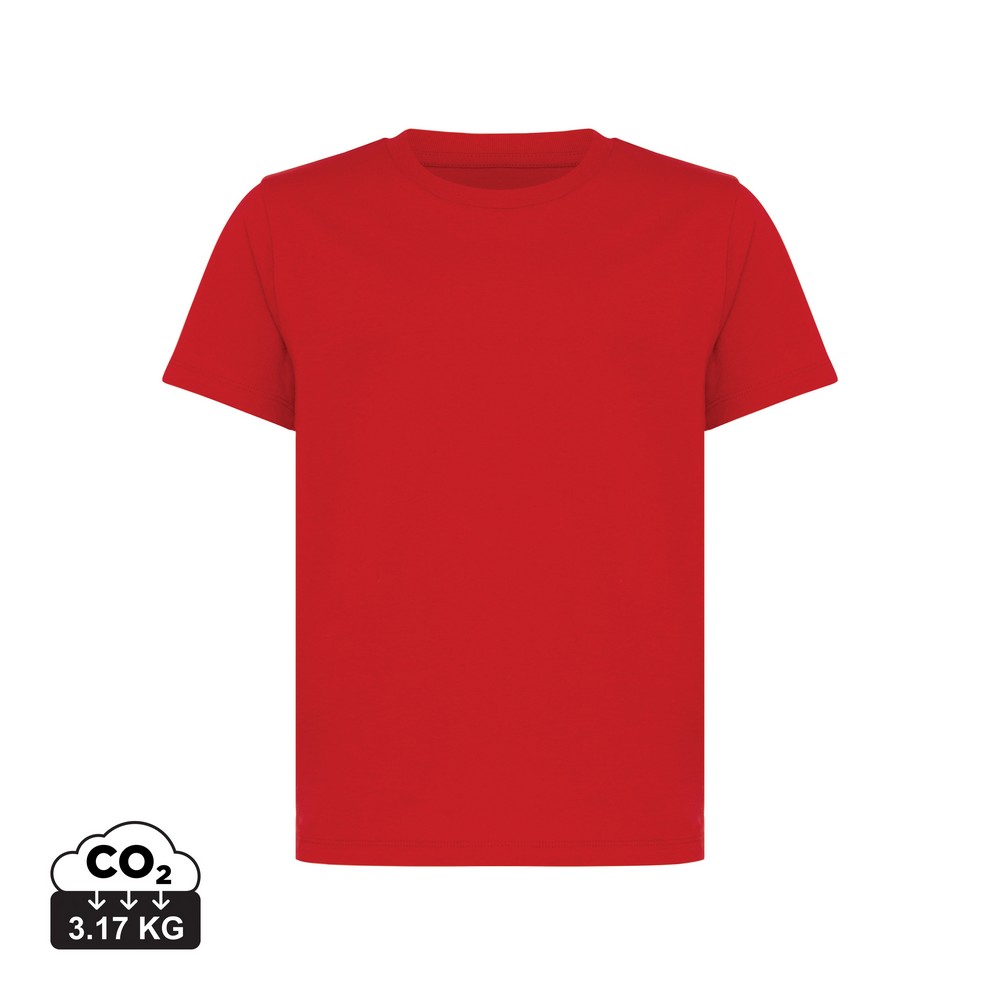 Koszulka dziecięca, regularny krój, okrągły dekolt, krótkie rękawy, wykonana w 30% z bawełny z recyklingu i w 70% z bawełny organicznej o gramaturze 160 g/m2, posiada wbudowany znacznik AWARE™, który potwierdza wykorzystanie materiałów z recyklingu, posiada kod QR na metce, który prowadzi do cyfrowego paszportu produktu, 2% wpływów z każdego sprzedanego produktu z kolekcji Impact jest przekazywane na rzecz Water.org, ślad węglowy produktu: 3,17 kg CO2
