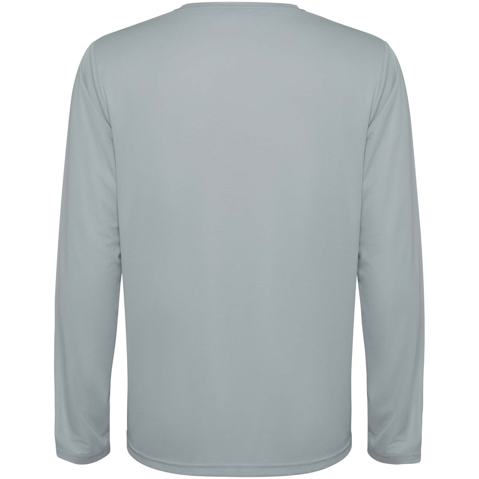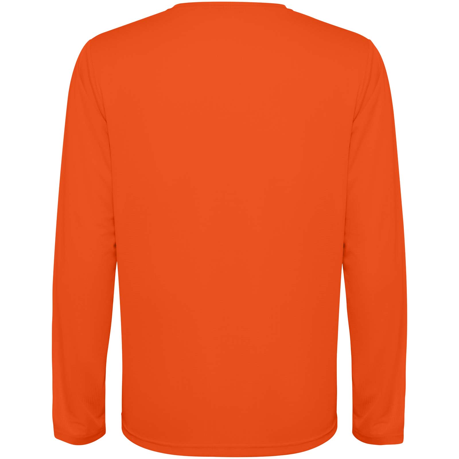 Kids long-sleeve unisex technical t-shirt. Collar with matching seams. Back hem slightly longer than the front. Side seams shifted forward.