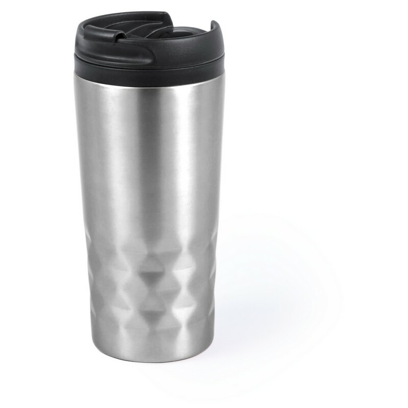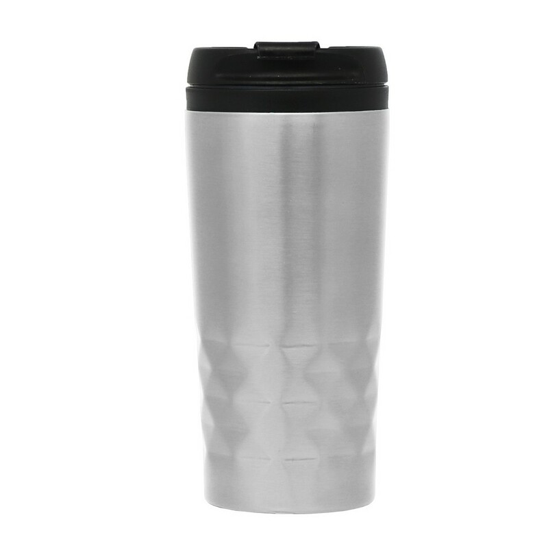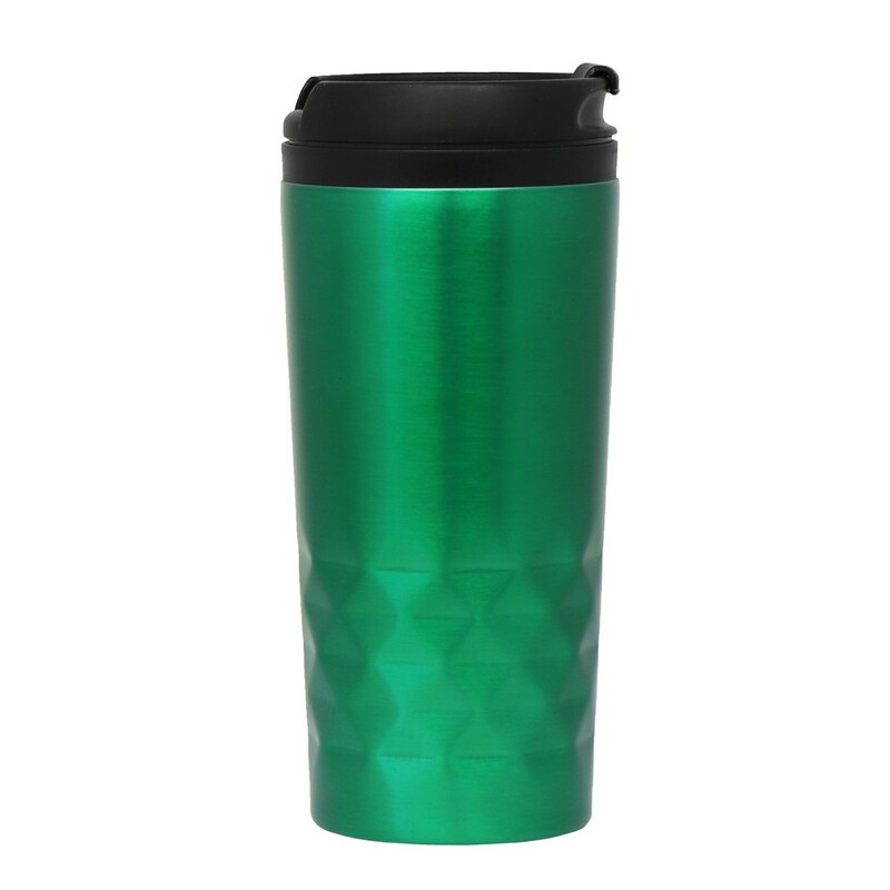 Geometryczny kubek termiczny 310 ml, podwójne ścianki, stal nierdzewna na zewnątrz, wnętrze z PP, utrzymuje temperaturę napojów gorących do 4 godzin