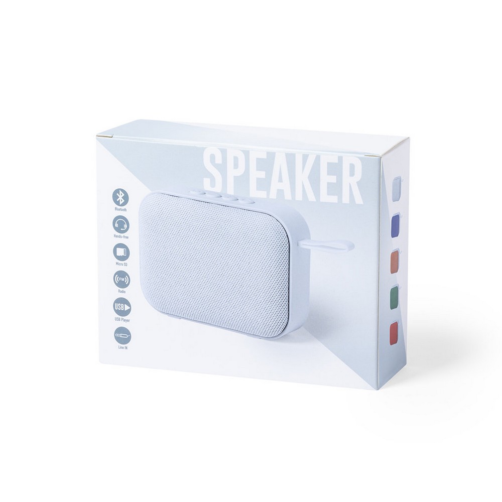 Głośnik bezprzewodowy BT 5.0 3W, bateria 400 mAh, posiada radio, funkcję odbierania połączeń oraz czytnik kart micro SD (nie dołączona), wbudowany mikrofon, gniazdo USB, zasięg do 10 m, wejście Jack 3,5 mm, ładowany przez USB, kabel micro USB w komplecie