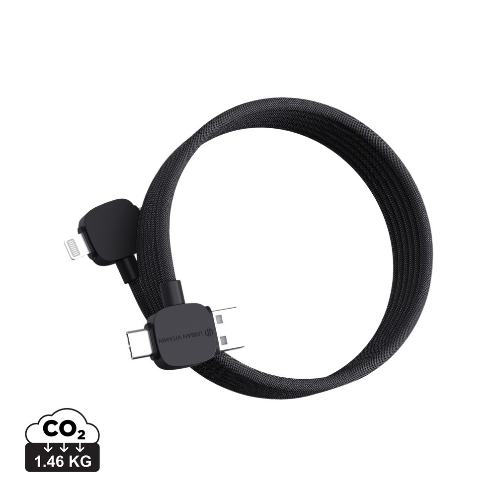 Kabel do ładowania i synchronizacji, 4 końcówki: 2 x USB typu C, USB i kompatybilna z iOS, dzięki magnetycznej konstrukcji kabel nie plącze się, szybkość ładowania za pomocą końcówek USB C do USB C do 65W, nadaje się do ładowania laptopa, wykonany z ABS z recyklingu, całkowita zawartość materiałów z recyklingu obliczona na podstawie wagi całkowitej produktu: 55%