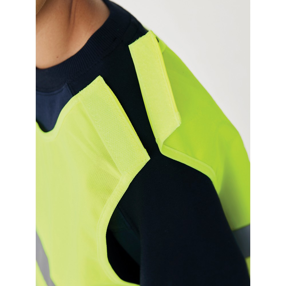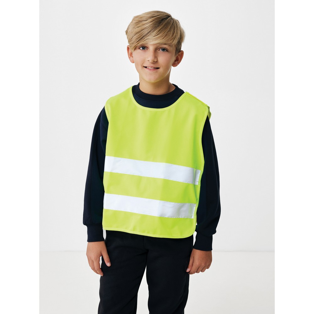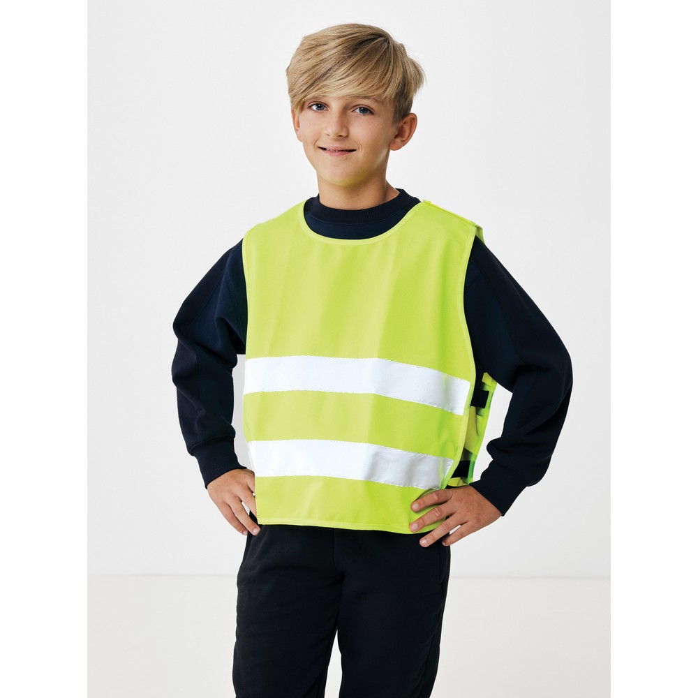 Kamizelka, rozmiar dziecięcy XS, odpowiednia dla dzieci o wzroście od 104 do 125 cm, wykonana z RPET, całkowita zawartość materiałów z recyklingu obliczona na podstawie wagi całkowitej przedmiotu: 58%, zgodna z normą EN 17353:2020 typ AB3 oraz z rozporządzeniem UE 2016/425, ślad węglowy produktu: 0,73 kg CO2