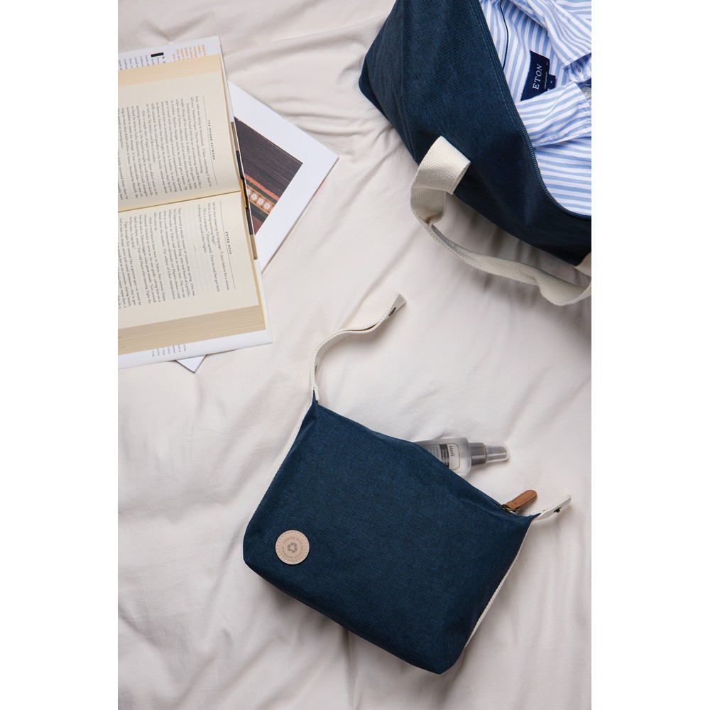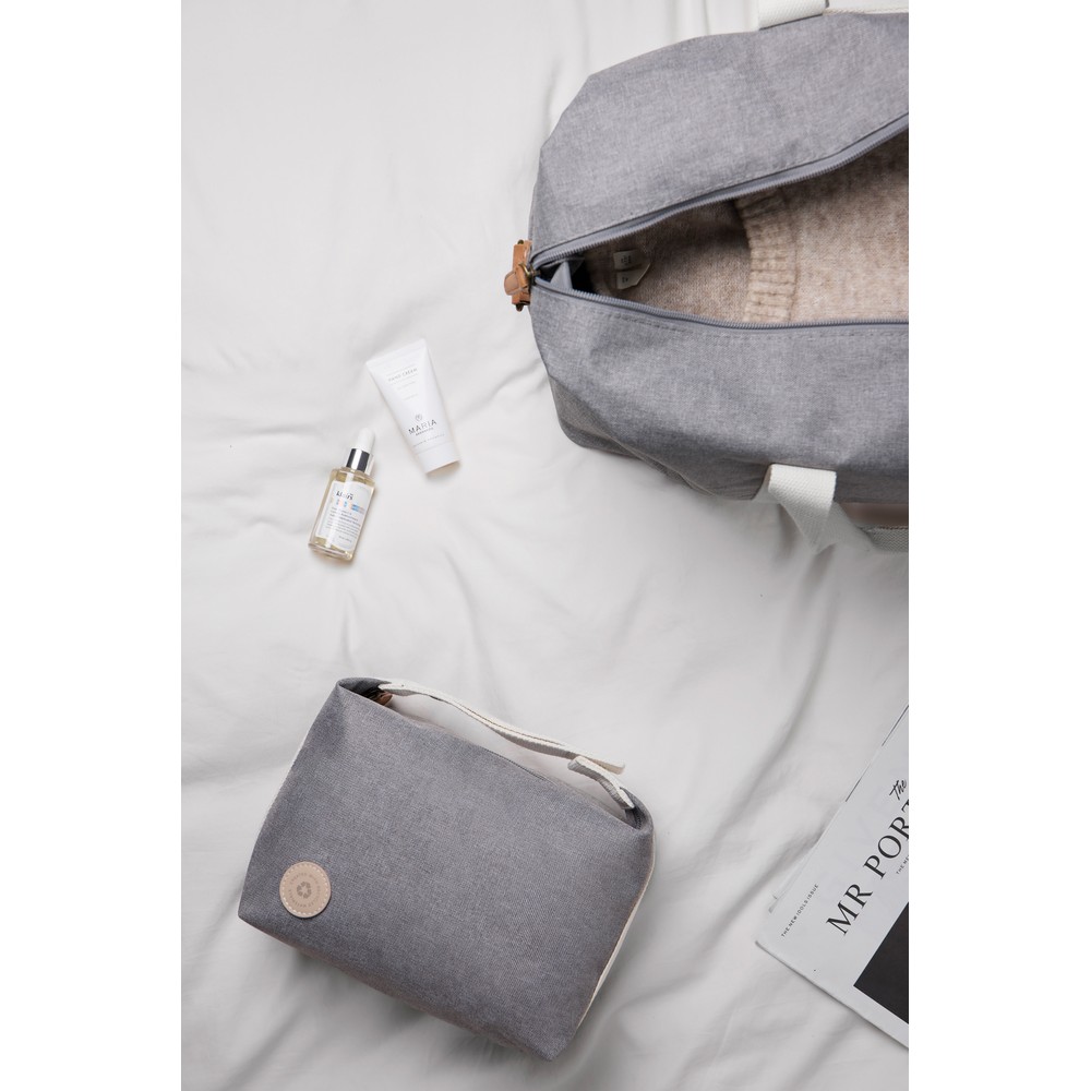Kosmetyczka, przestronna przegroda główna, wykonana z materiałów z recyklignu, całkowita zawartość materiałów z recyklingu obliczona w oparciu o wagę całkowitą przedmiotu: 24%