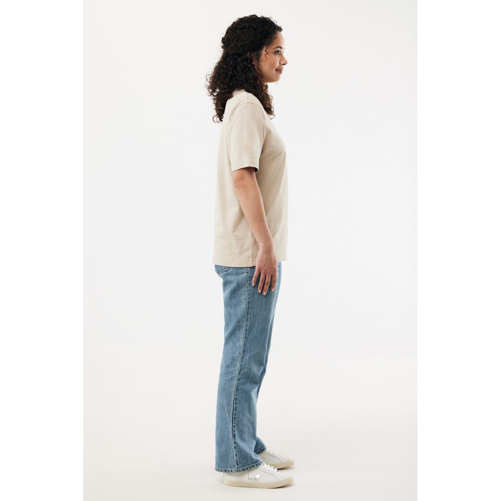 Koszulka, unisex, nowoczesny krój, okrągły dekolt, krótkie rękawy, wykonana w 50% z bawełny z recyklingu i w 50% z bawełny organicznej o gramaturze 220 g/m2, bez dodatku poliestru, posiada wbudowany znacznik AWARE™, który potwierdza wykorzystanie materiałów z recyklingu, posiada kod QR na metce, który prowadzi do cyfrowego paszportu produktu, 2% wpływów z każdego sprzedanego produktu jest przekazywane na rzecz Water.org