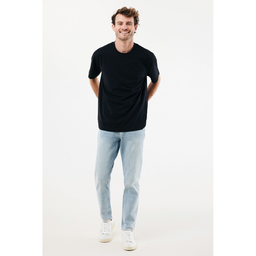Koszulka, unisex, nowoczesny krój, okrągły dekolt, krótkie rękawy, wykonana w 50% z bawełny z recyklingu i w 50% z bawełny organicznej o gramaturze 220 g/m2, bez dodatku poliestru, posiada wbudowany znacznik AWARE™, który potwierdza wykorzystanie materiałów z recyklingu, posiada kod QR na metce, który prowadzi do cyfrowego paszportu produktu, 2% wpływów z każdego sprzedanego produktu jest przekazywane na rzecz Water.org