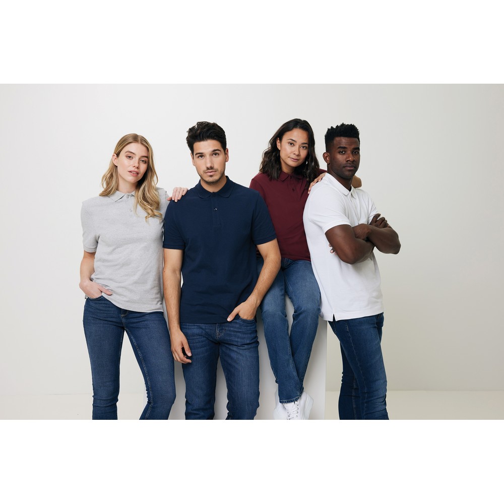 Koszulka polo, unisex, zapięcie na 2 guziki, regularny krój, splot Pique, 2 rozporki po bokach, krótkie rękawy, wykonana w 50% z bawełny z recyklingu i w 50% z bawełny organicznej o gramaturze 220 g/m2, bez dodatku poliestru, posiada wbudowany znacznik AWARE™, który potwierdza wykorzystanie materiałów z recyklingu, posiada kod QR na metce, który prowadzi do cyfrowego paszportu produktu, 2% wpływów z każdego sprzedanego produktu z kolekcji Impact jest przekazywane na rzecz Water.org