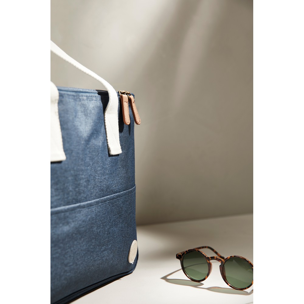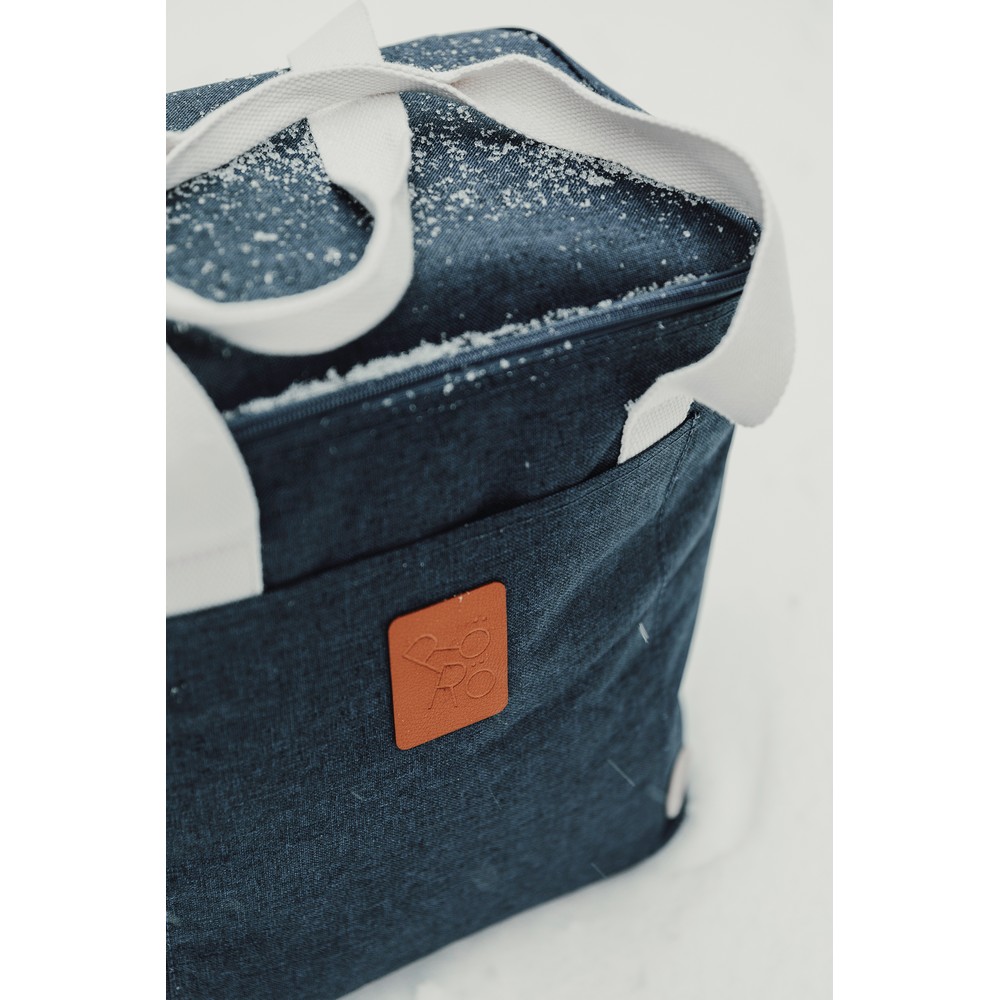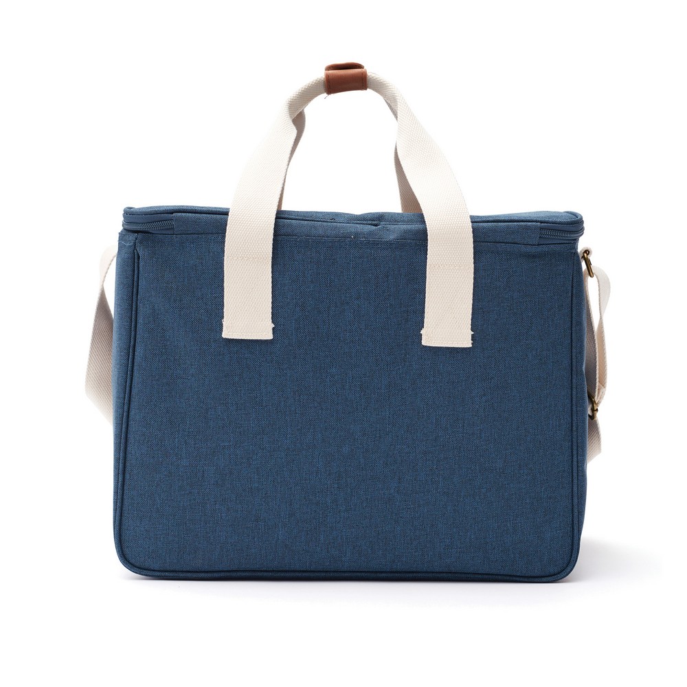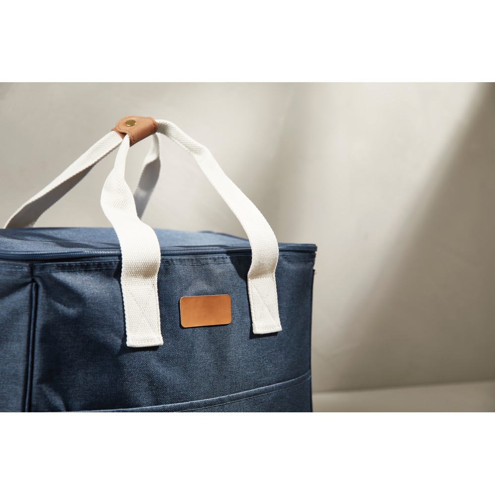 Pojemny koszyk termoizolacyjny, wykonany w 50% z poliestru pochodzącego z butelek PET z recyklingu, wnętrze z PEVA, z paskiem na ramię i uchwytami