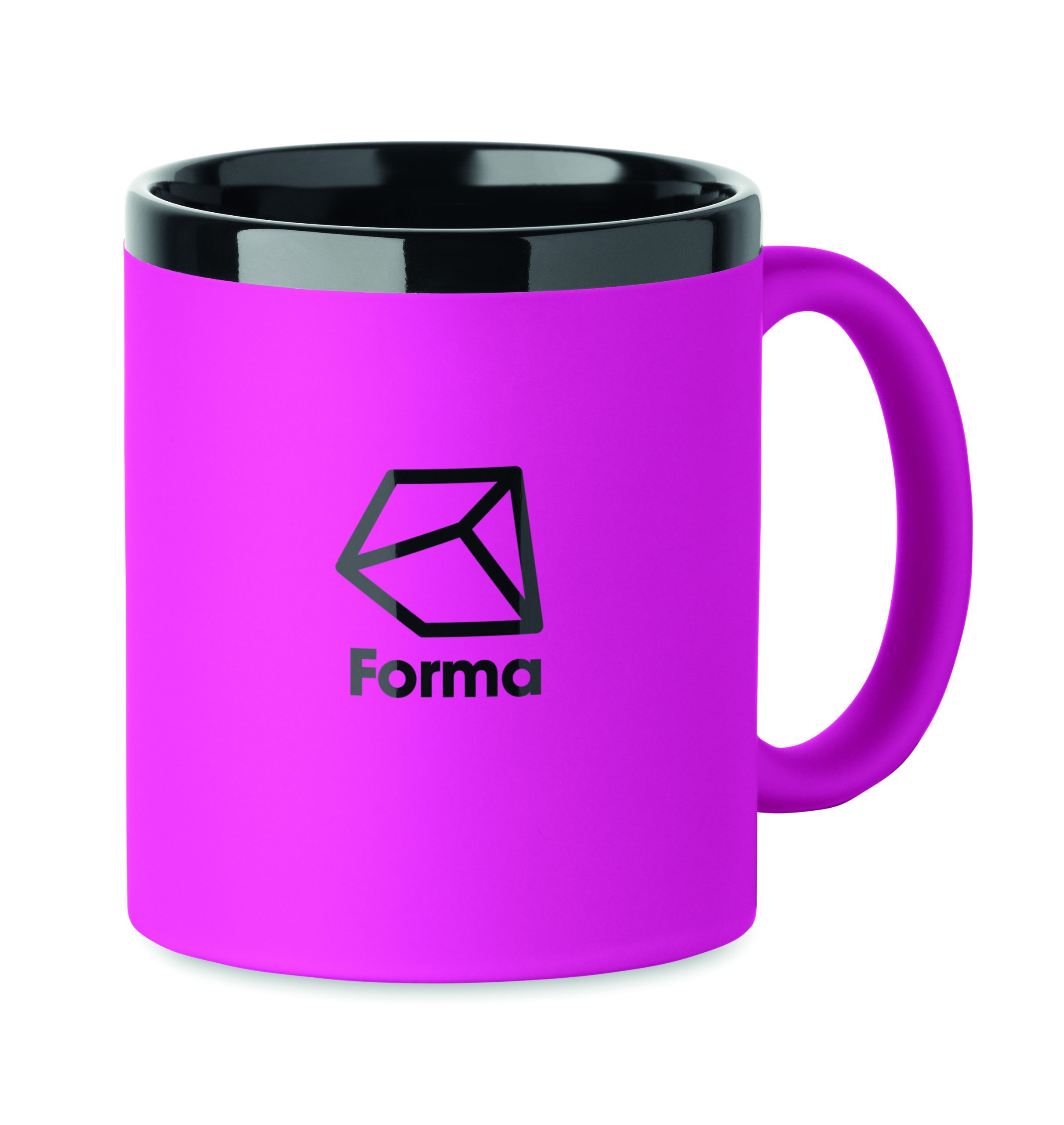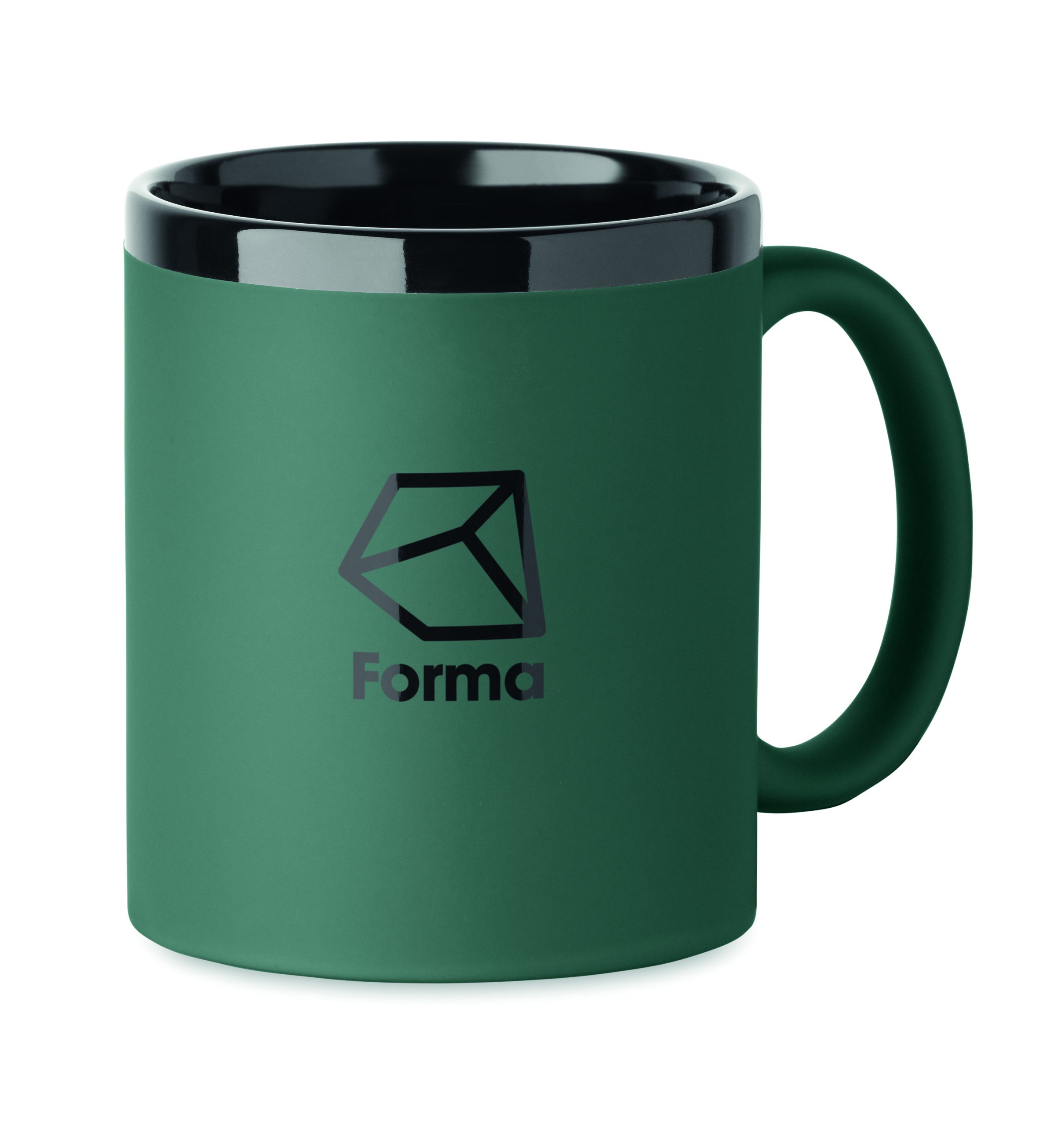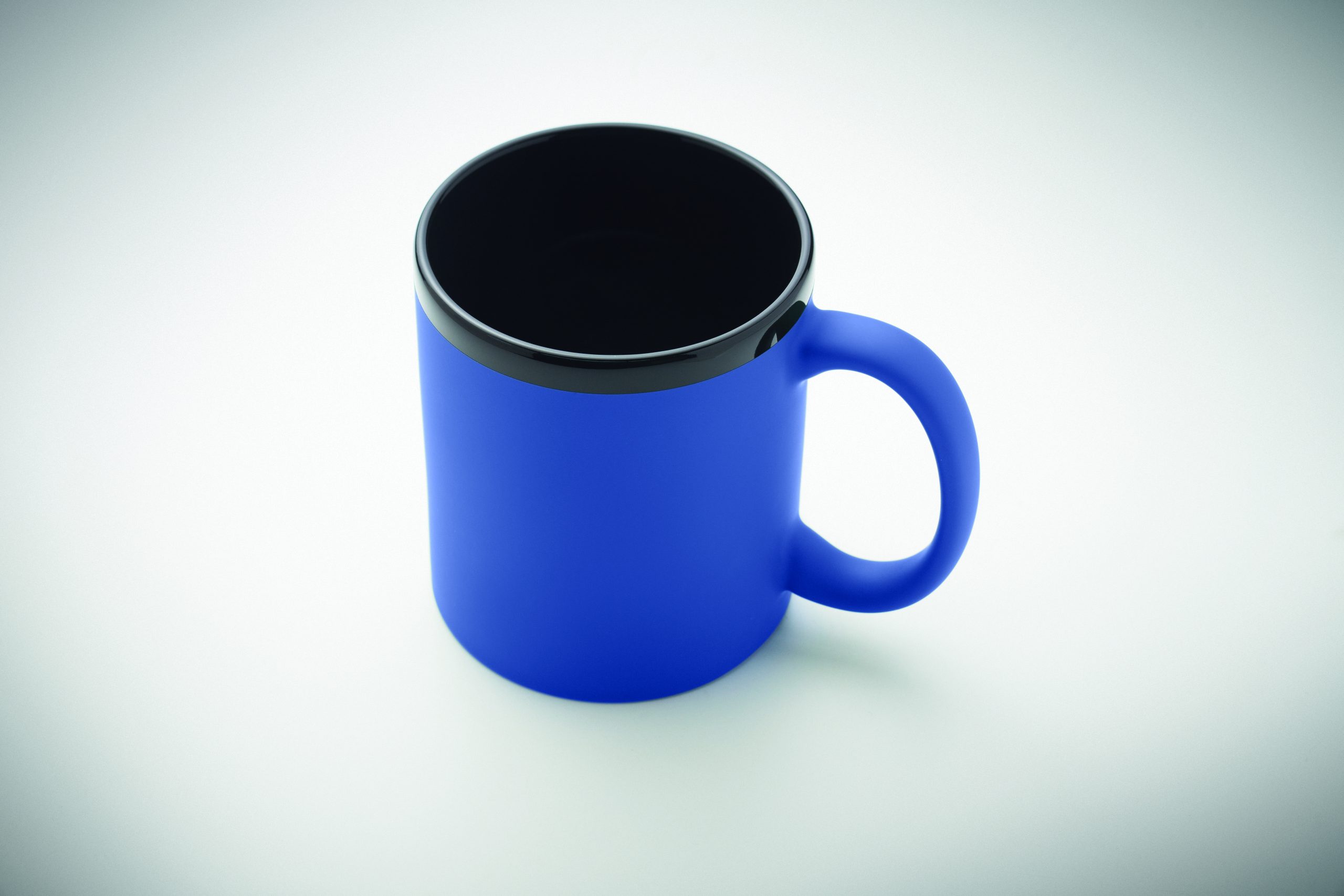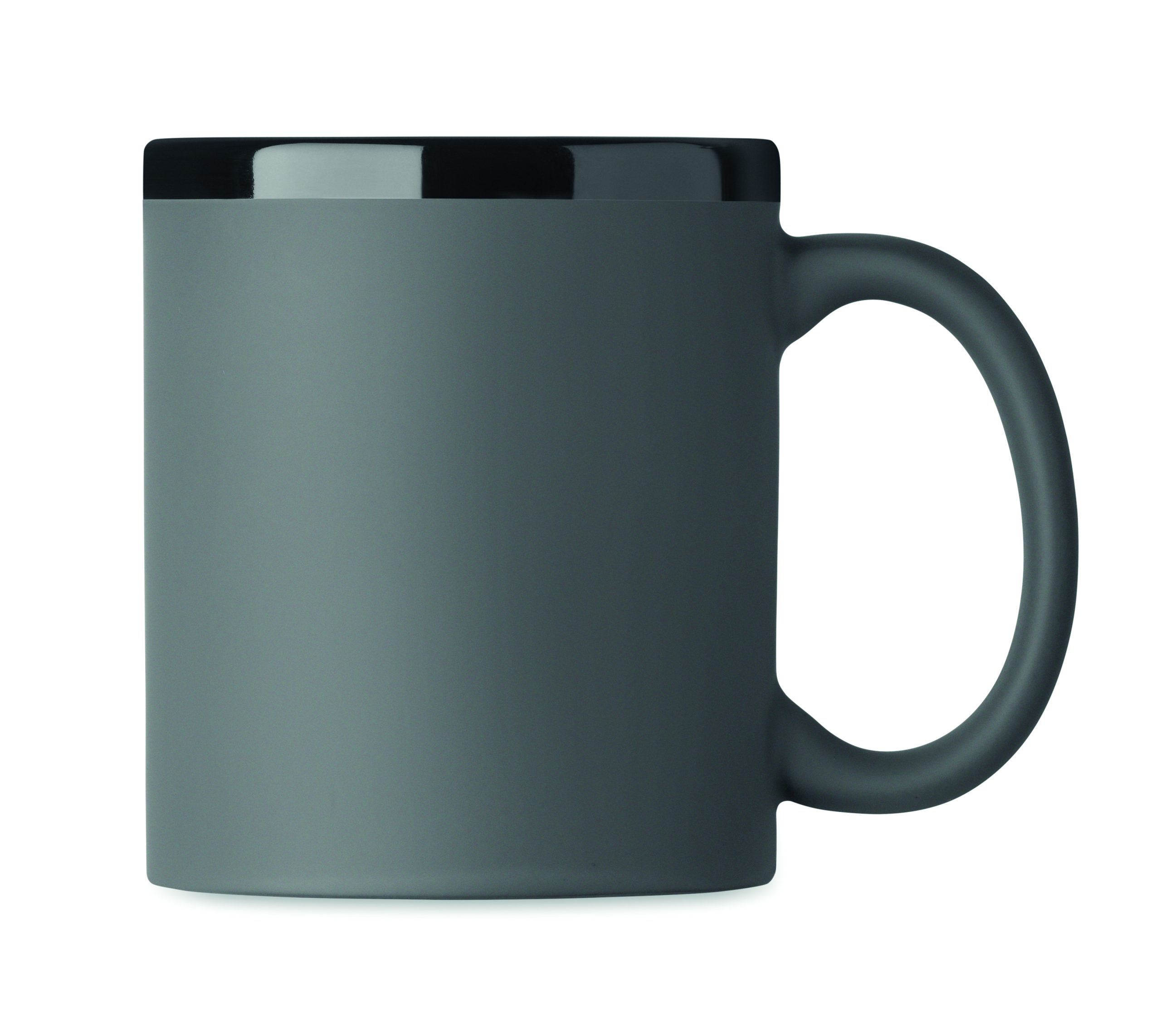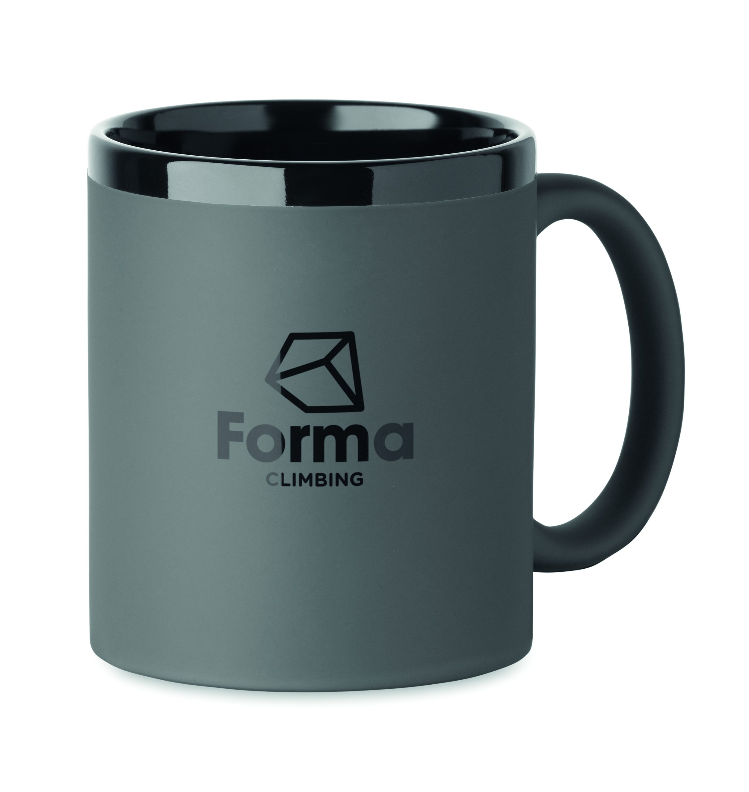 Ceramiczny kubek z powłoką soft touch i czarnym wnętrzem/obrzeżem. Odpowiedni do grawerowania laserowego. Pojemność: 300 ml. Pakowany pojedynczo w białe pudełko kartonowe.