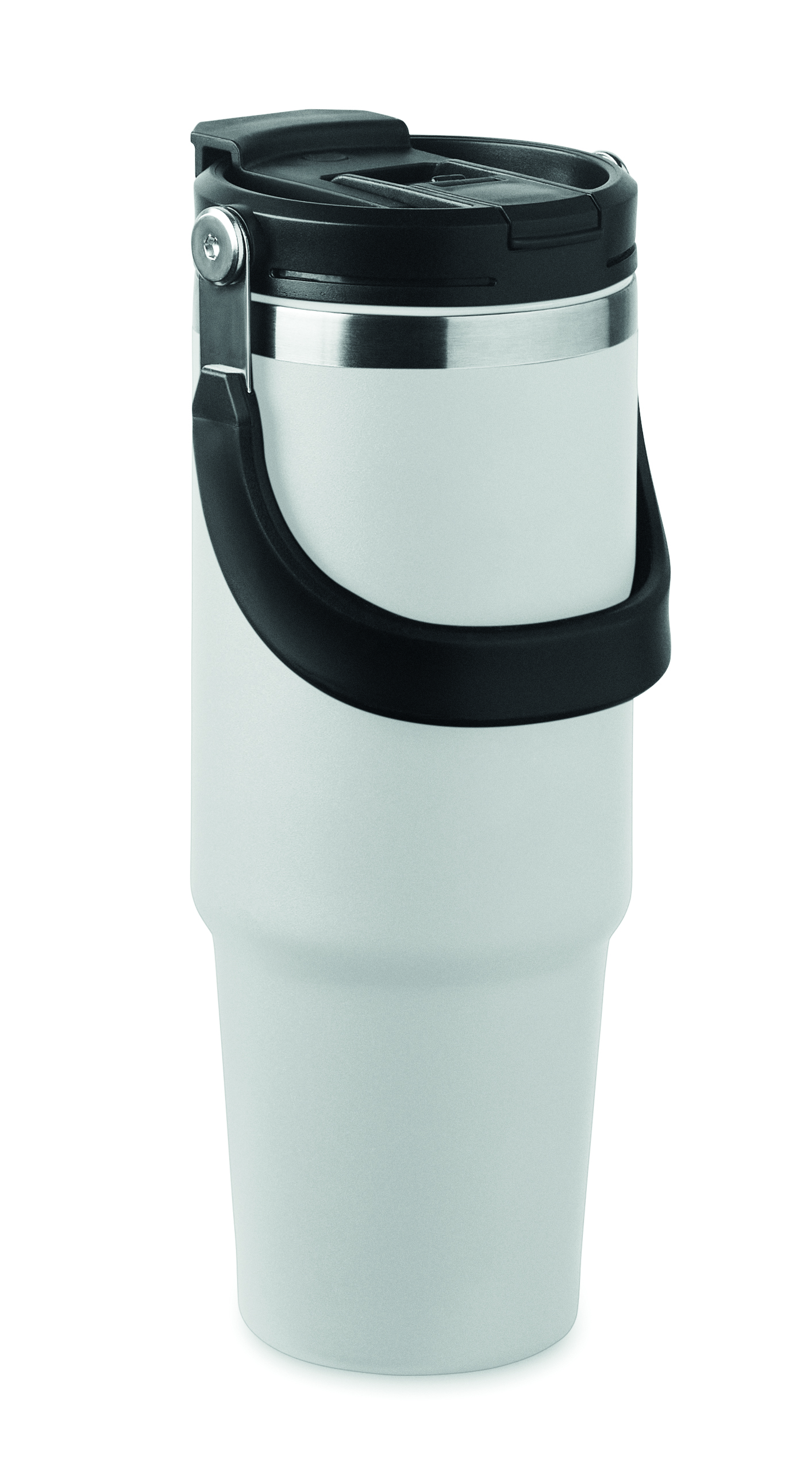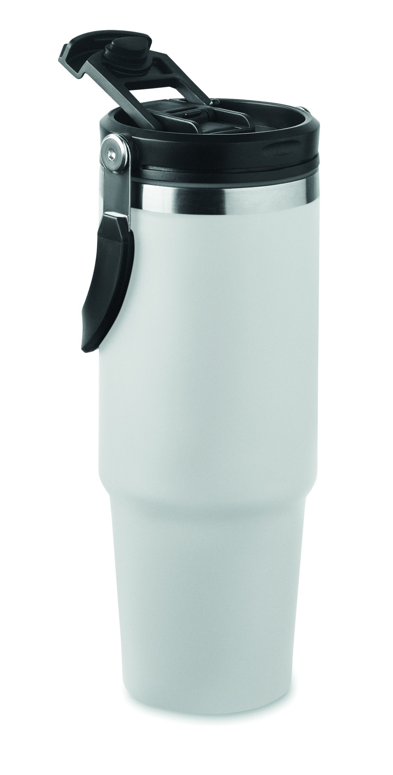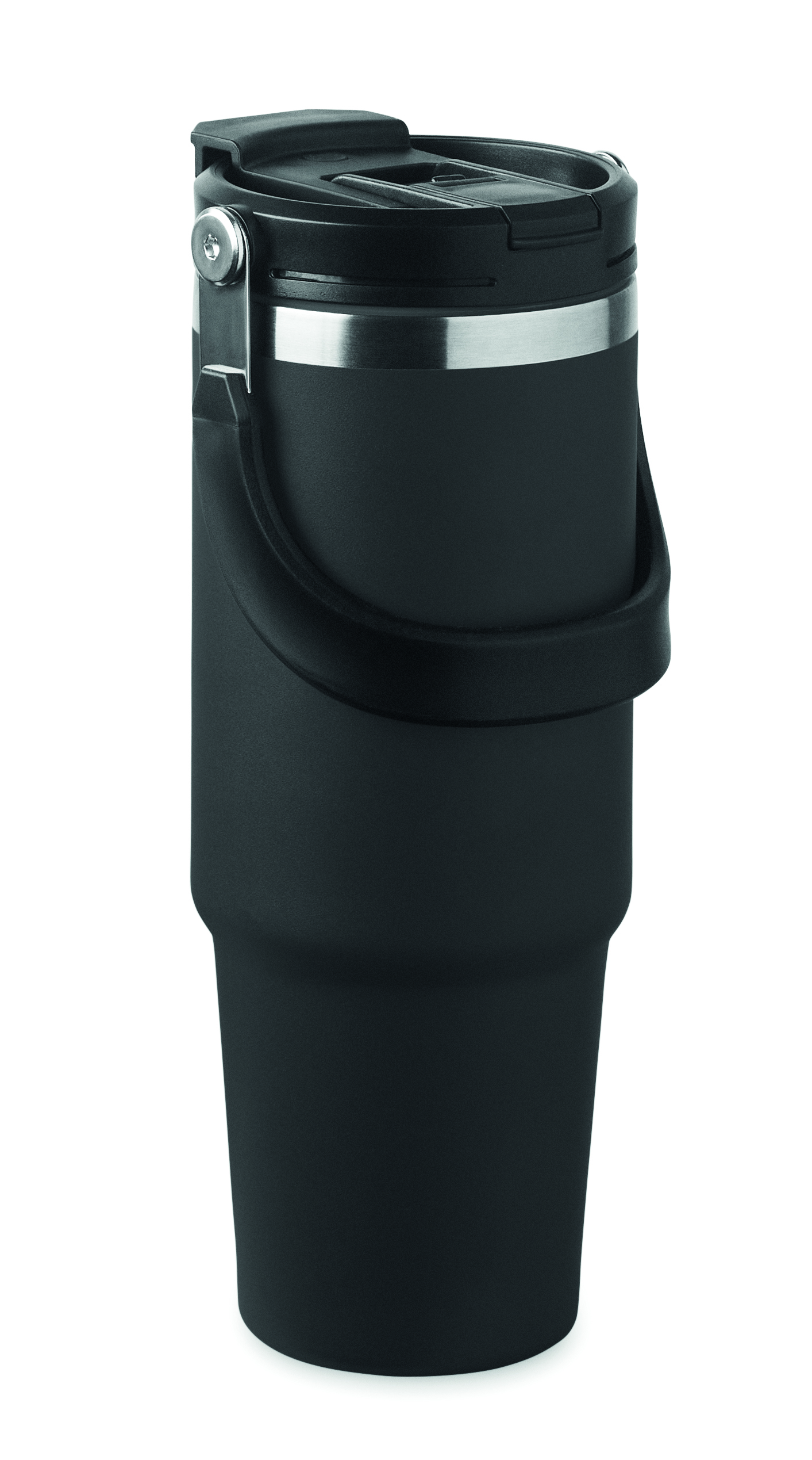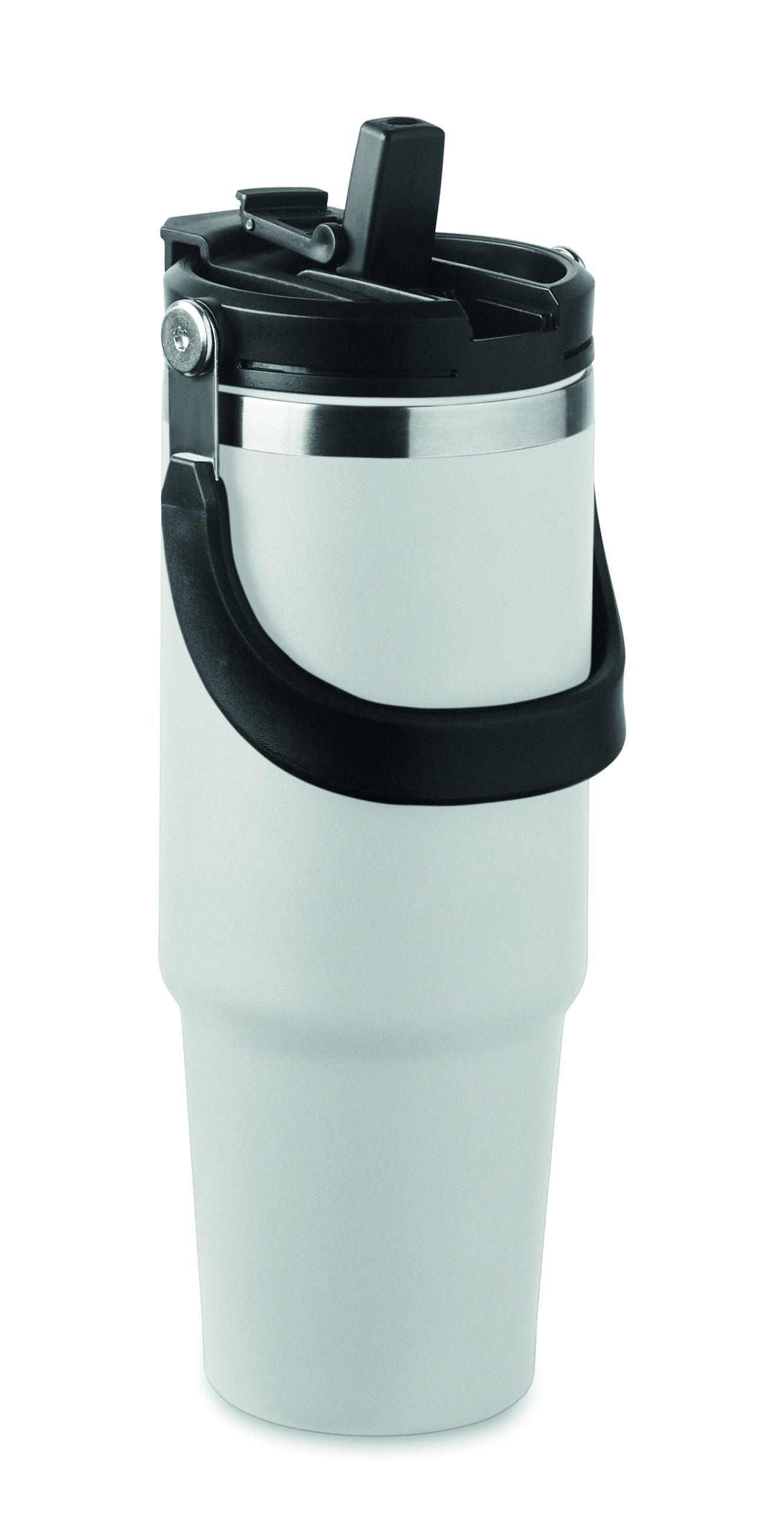 Kubek o podwójnych ściankach z recyklingowanej stali nierdzewnej (90% z recyklingowanej stali nierdzewnej i 10% ze stali nierdzewnej) z pokrywką z wewnętrzną słomką, składanym ustnikiem i otworem do bezpośredniego picia. Pojemność 850 ml.
