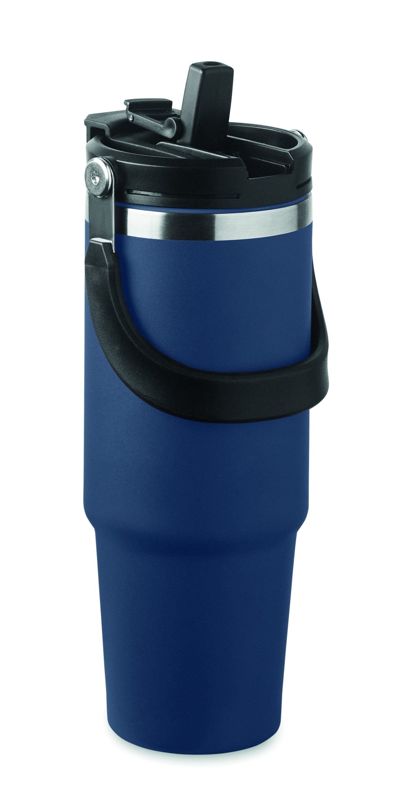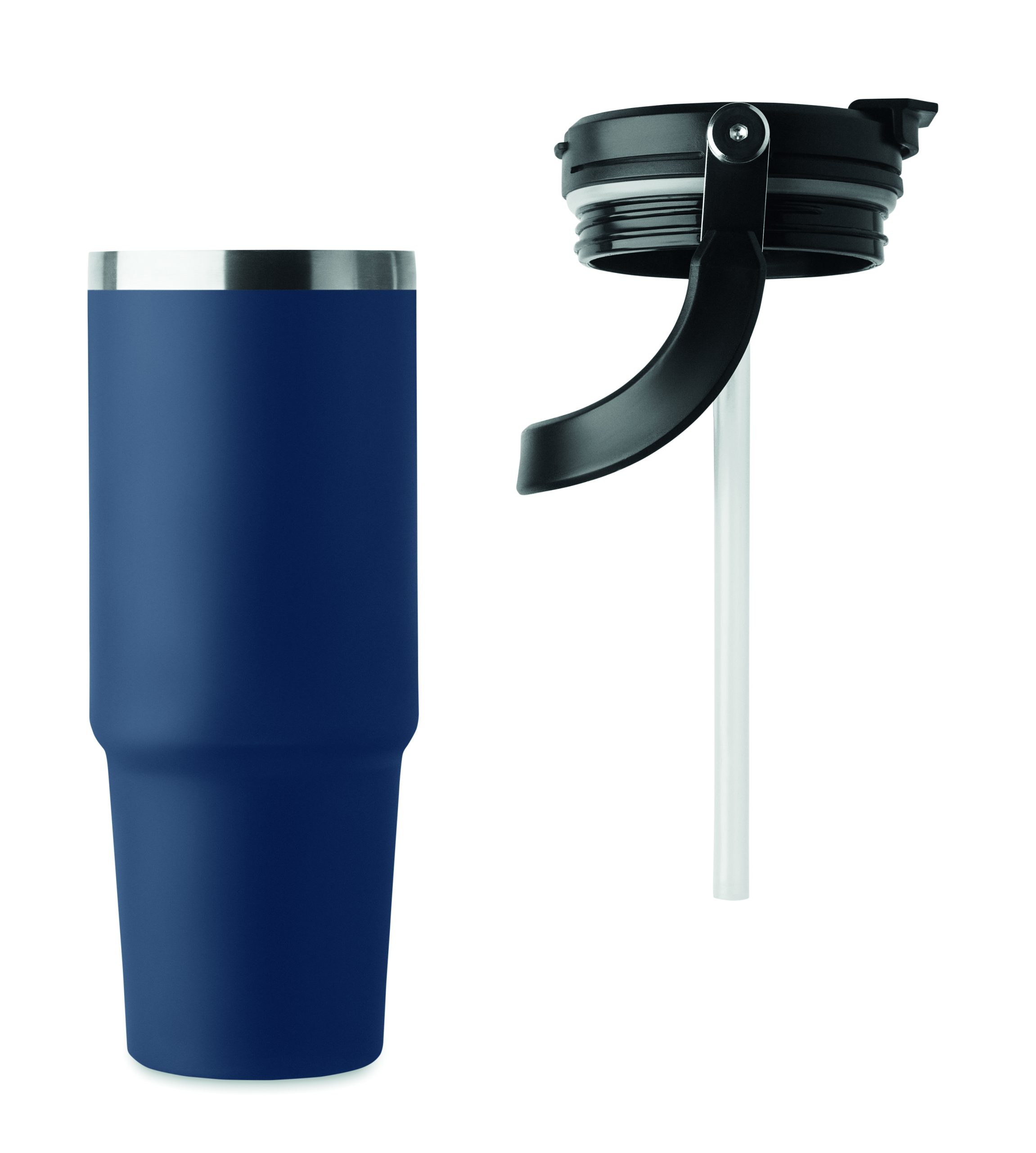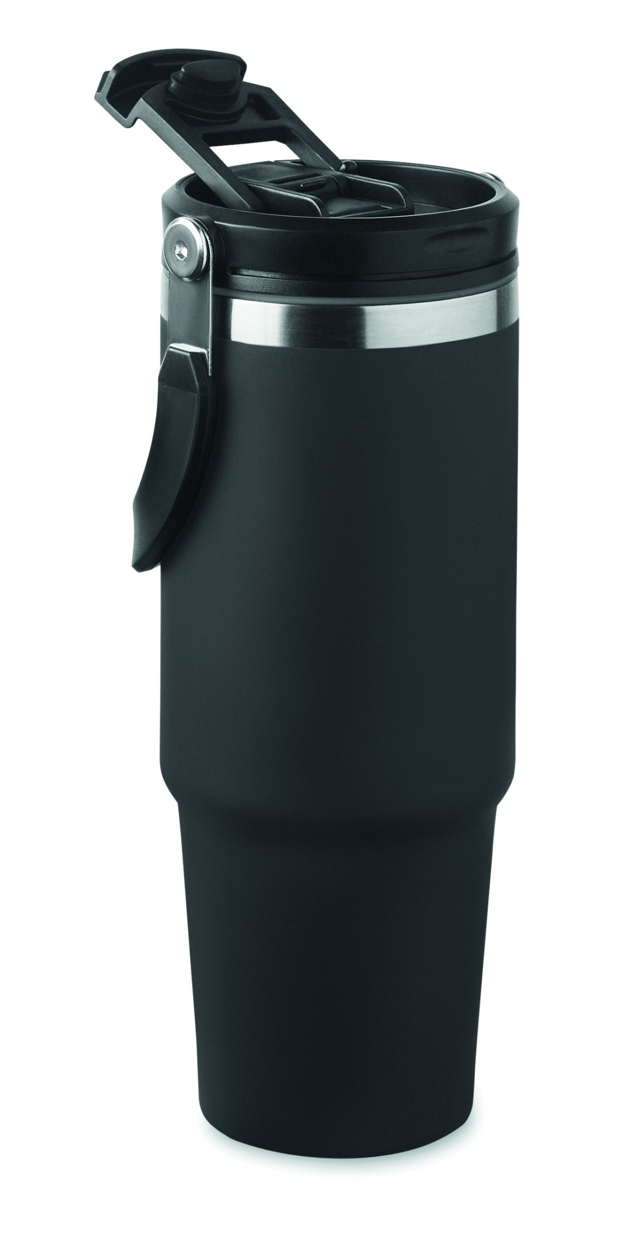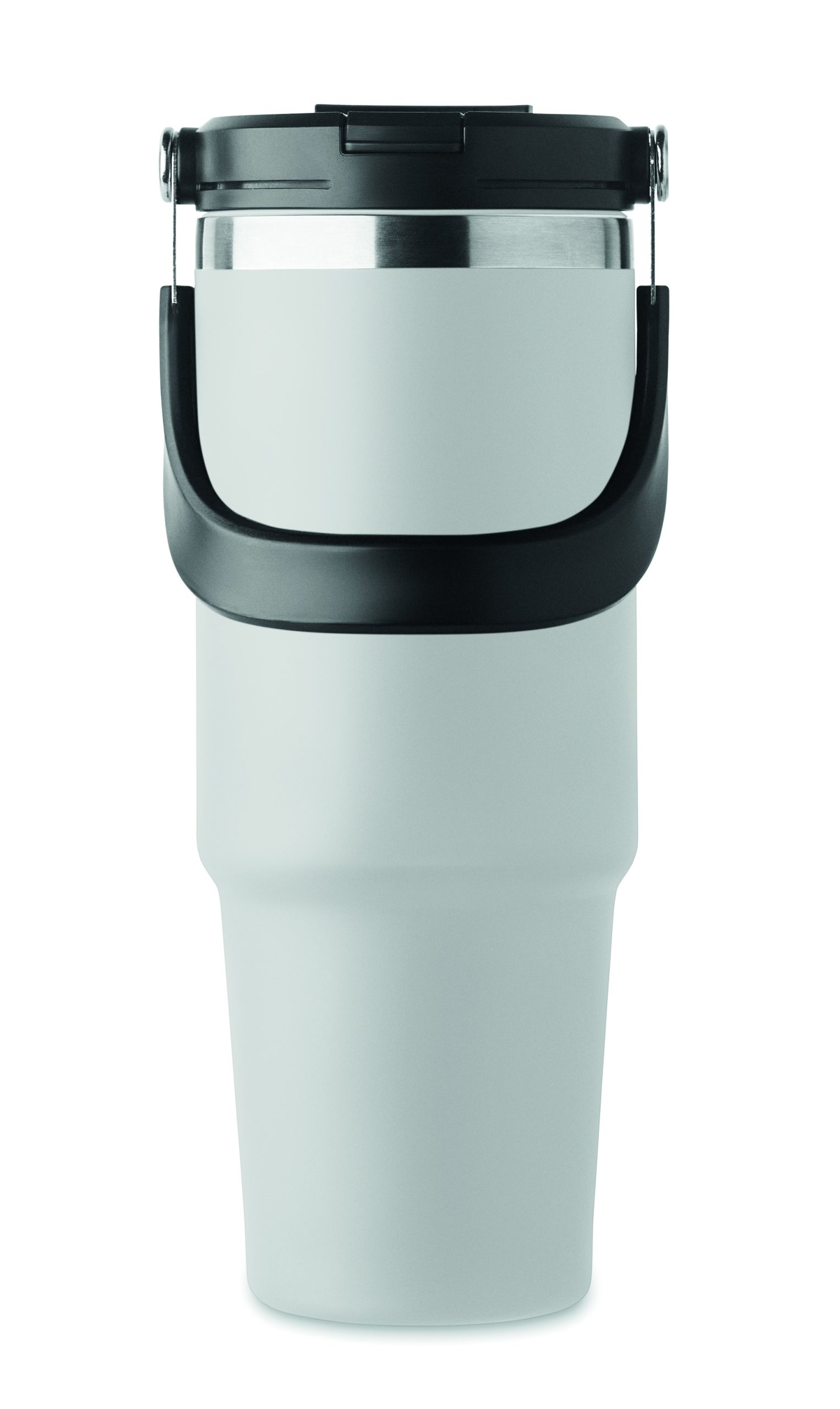 Kubek o podwójnych ściankach z recyklingowanej stali nierdzewnej (90% z recyklingowanej stali nierdzewnej i 10% ze stali nierdzewnej) z pokrywką z wewnętrzną słomką, składanym ustnikiem i otworem do bezpośredniego picia. Pojemność 850 ml.