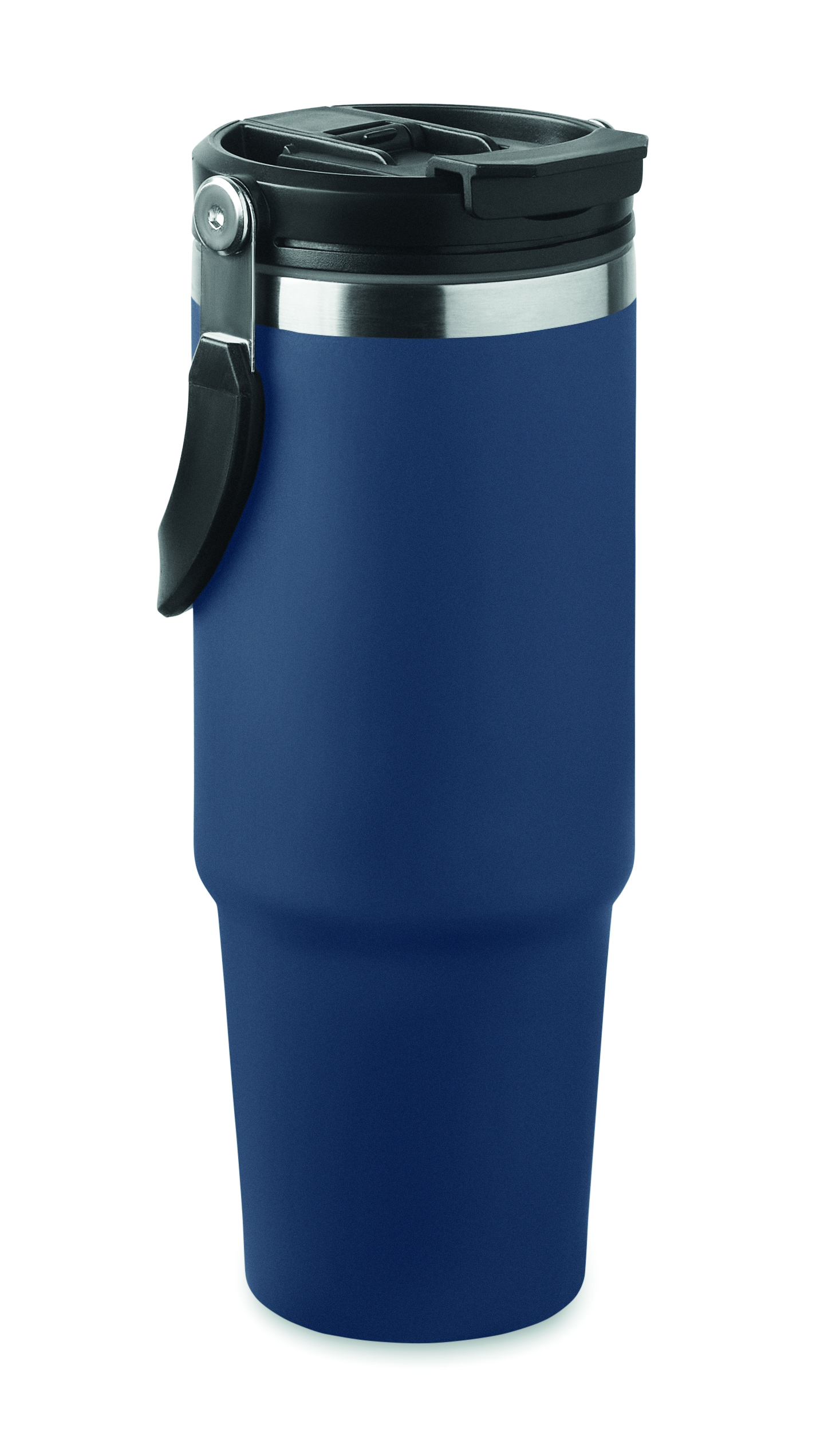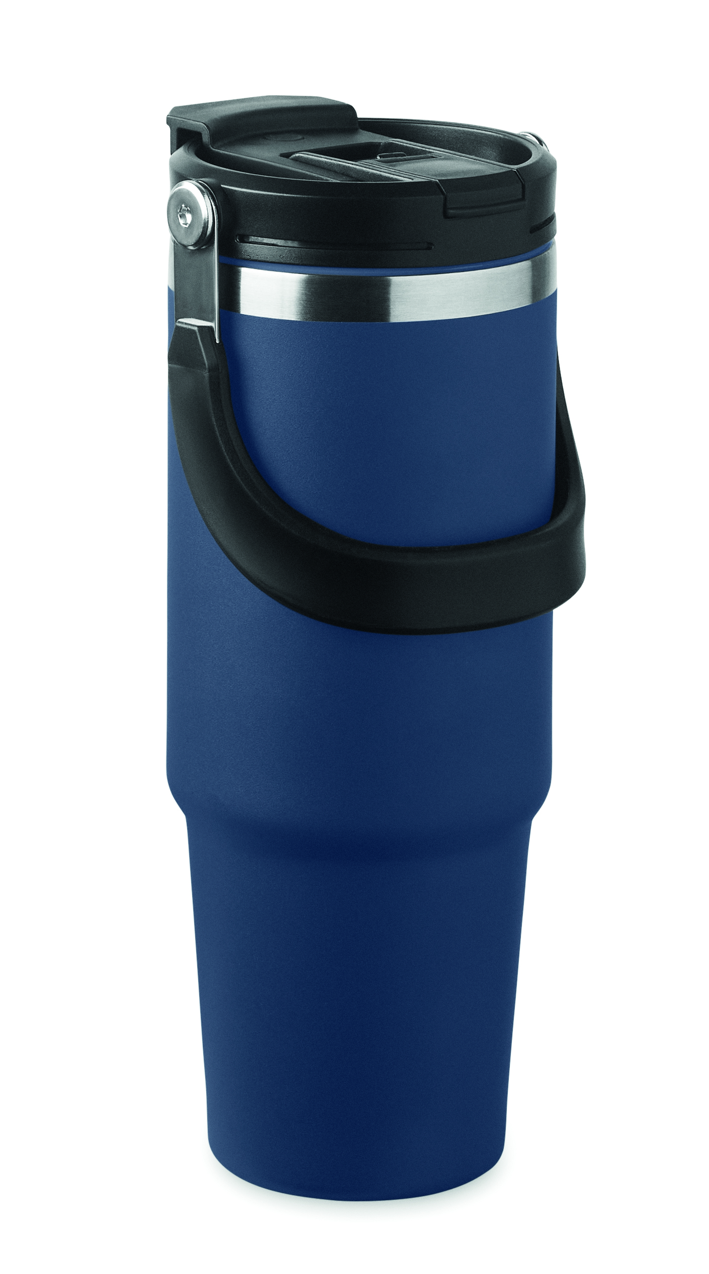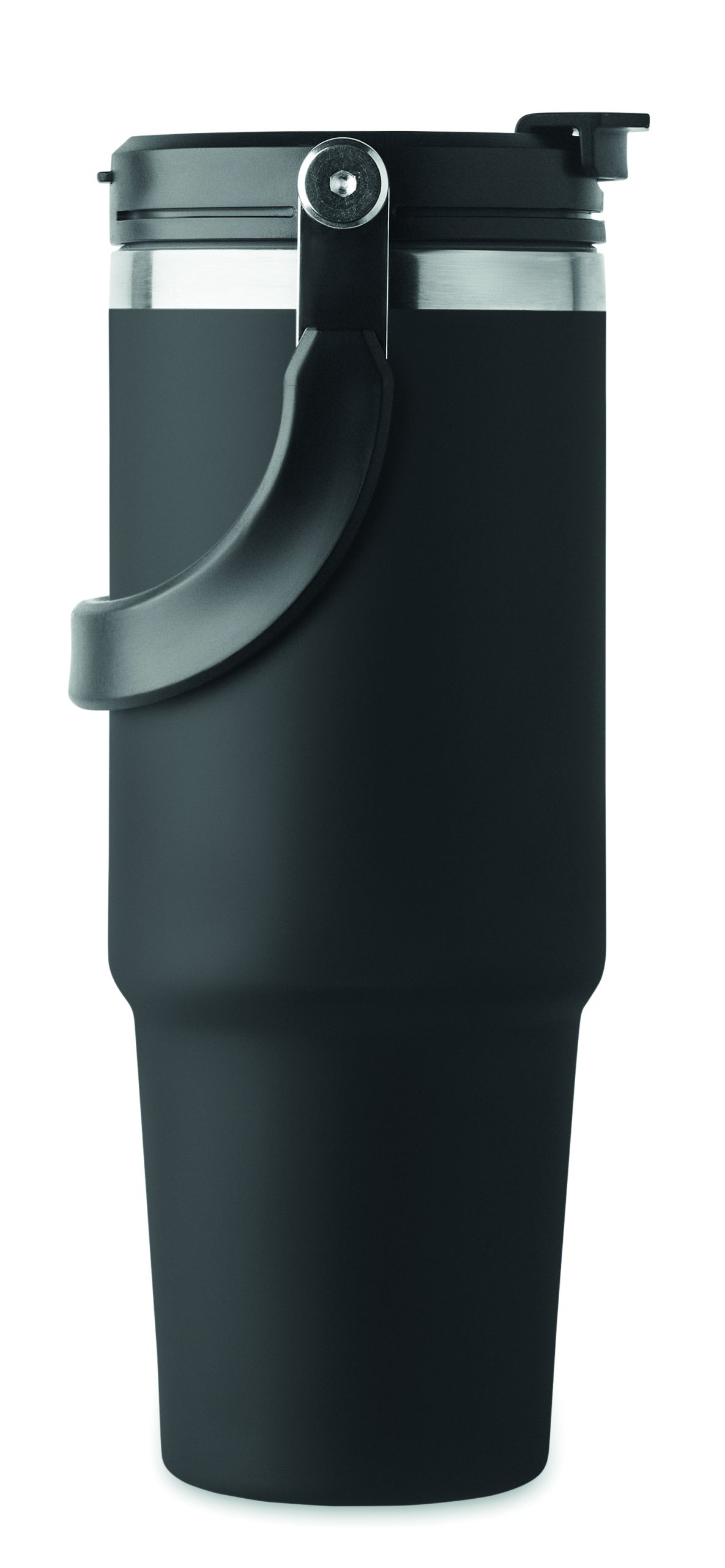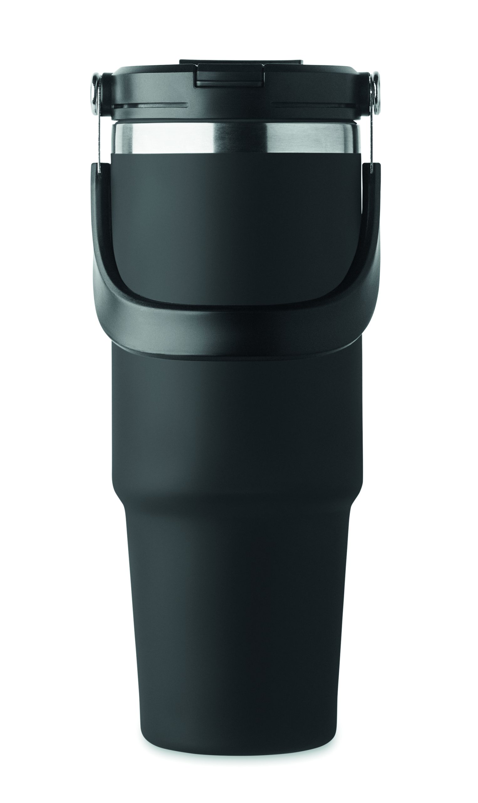 Kubek o podwójnych ściankach z recyklingowanej stali nierdzewnej (90% z recyklingowanej stali nierdzewnej i 10% ze stali nierdzewnej) z pokrywką z wewnętrzną słomką, składanym ustnikiem i otworem do bezpośredniego picia. Pojemność 850 ml.