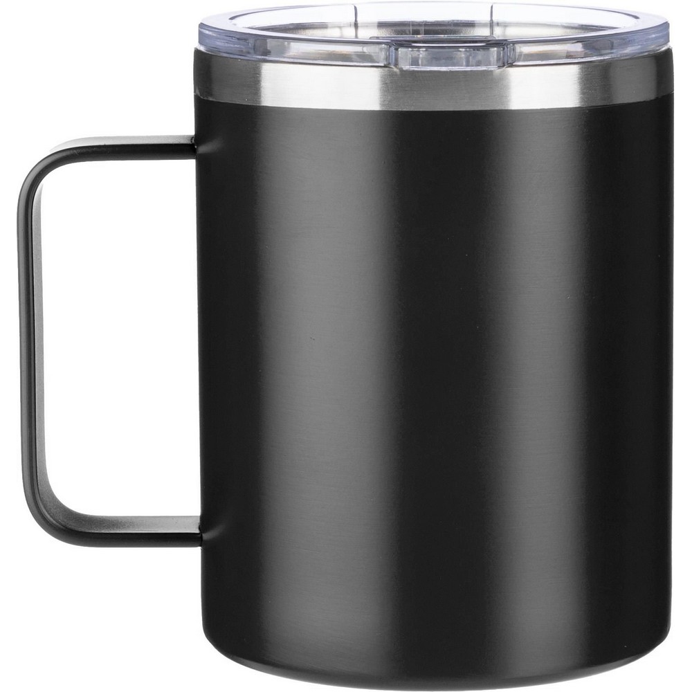 Kubek podróżny 300 ml, z podwójnymi ściankami dzięki którym zewnętrzna strona kubka nie nagrzewa się, matowe wykończenie, wieczko z otworem ułatwiającym picie ulubionego napoju, ikona stali z recyklingu na produkcie, produkt wykonany ze stali nierdzewnej z recyklingu