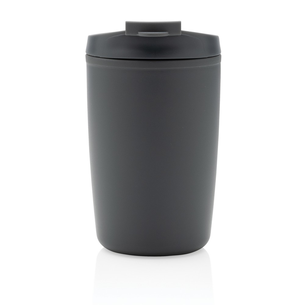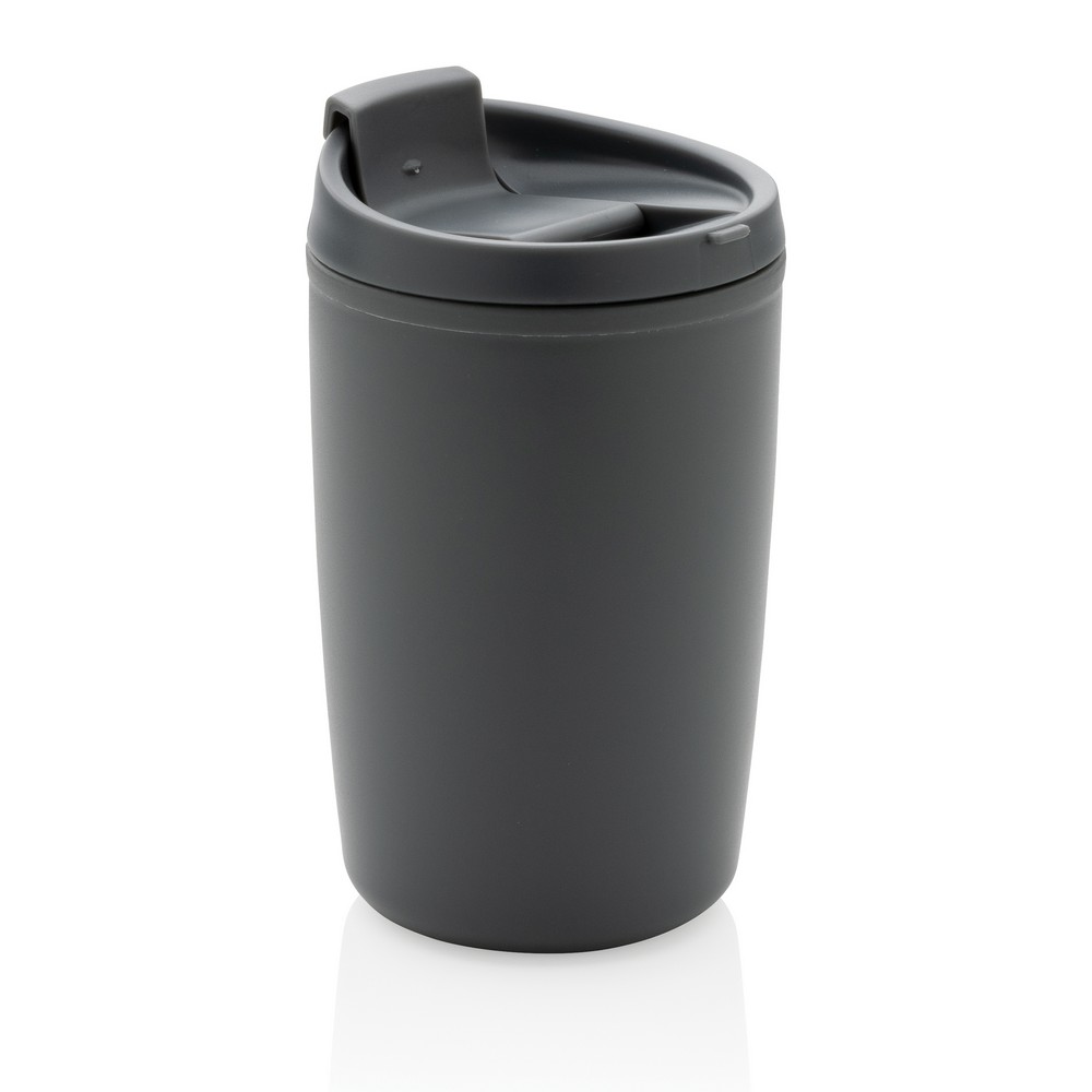 Kubek podróżny 300 ml, nie wymaga obsługi oburącz, wykonany z PP z recyklingu z certyfikatem GRS (Global Recycled Standard) który gwarantuje, że wykorzystane materiały pochodzą z recyklingu, całkowita zawartość materiału z recyklingu obliczona w oparciu o wagę całkowitą przedmiotu: 96%, można myć w zmywarce i używać w kuchence mikrofalowej, w pudełku z papieru kraftowego z certyfikatem FSC® (Forest Stewardship Council), ślad węglowy produktu: 0,38 kg CO2