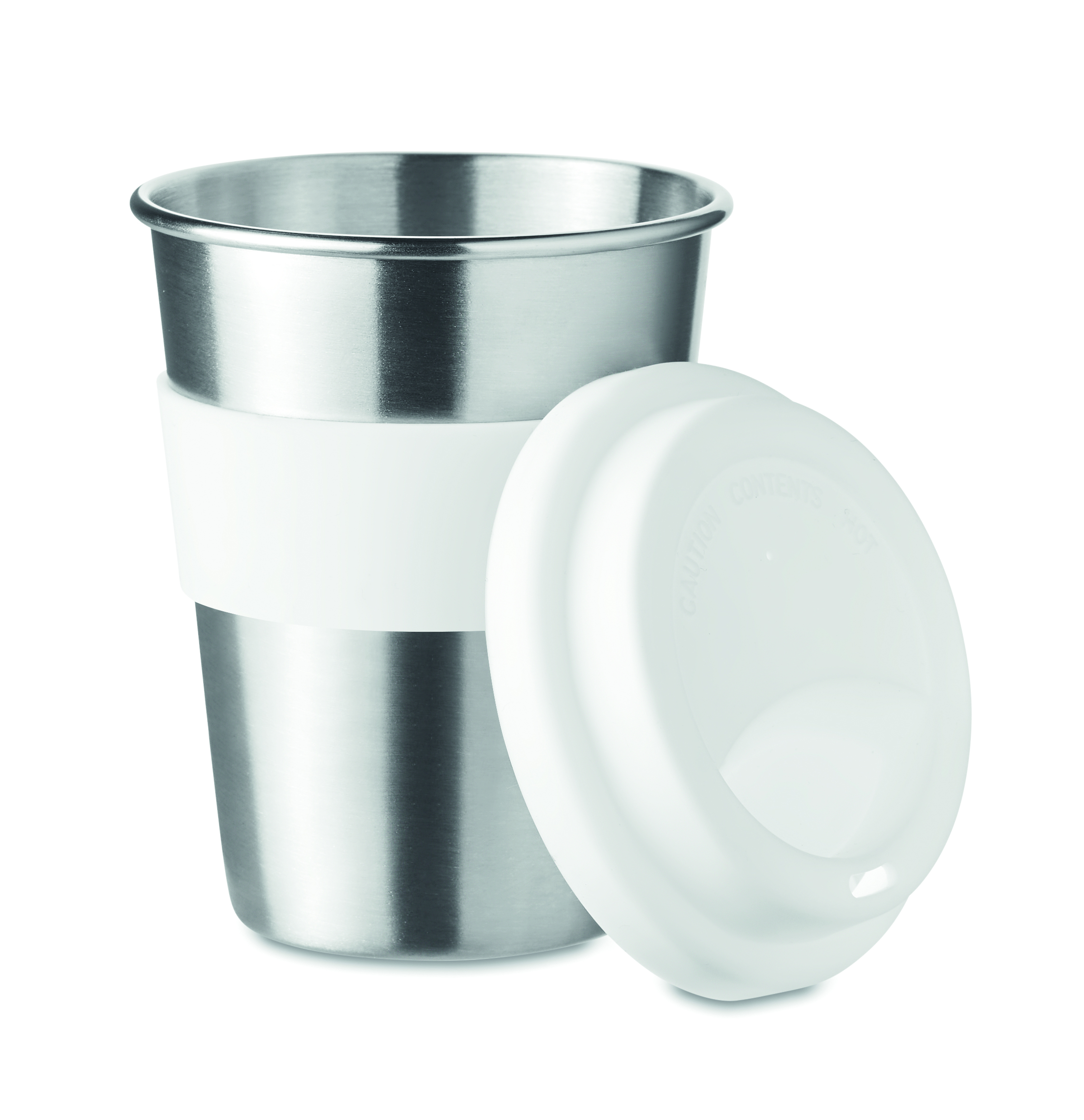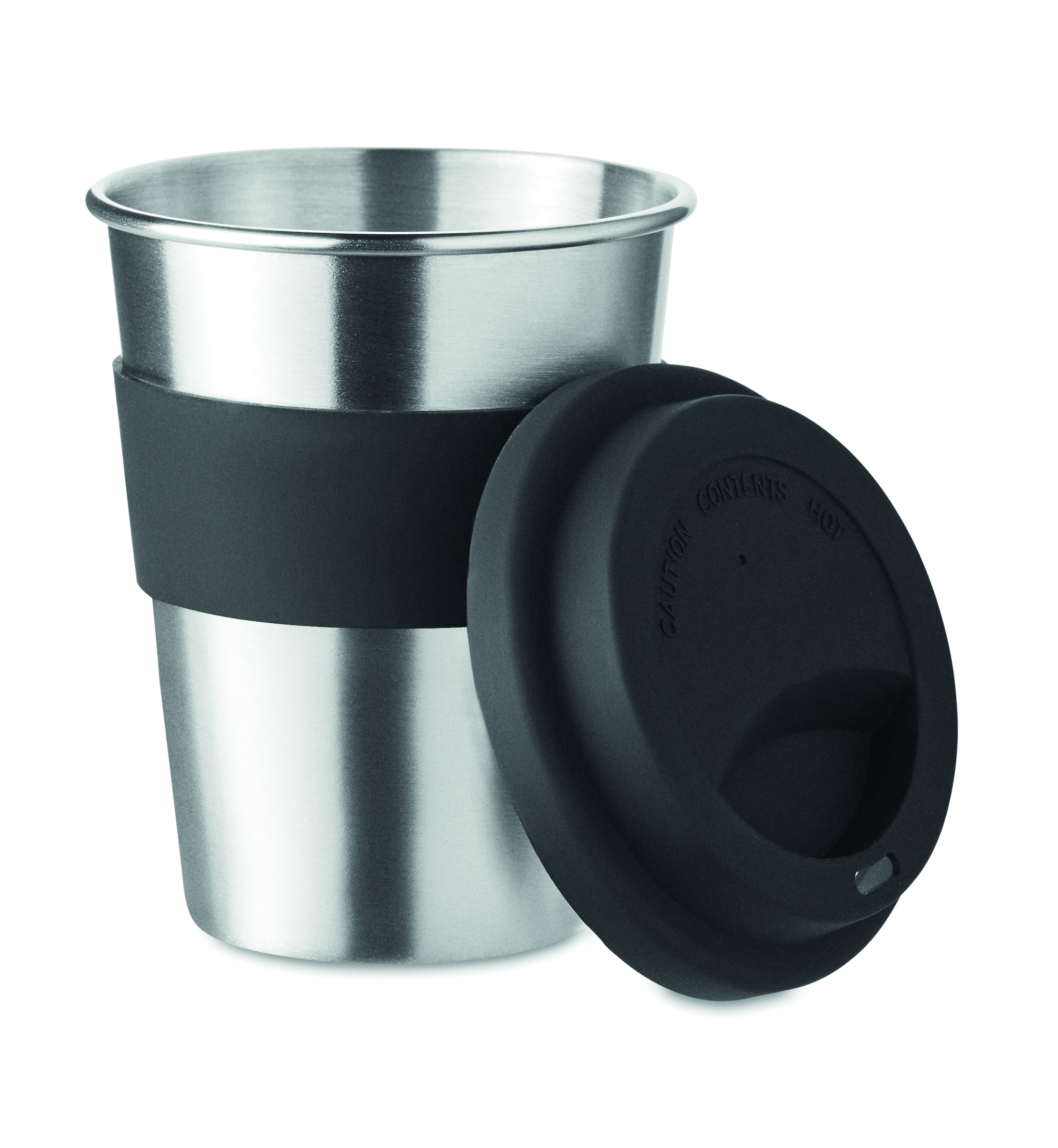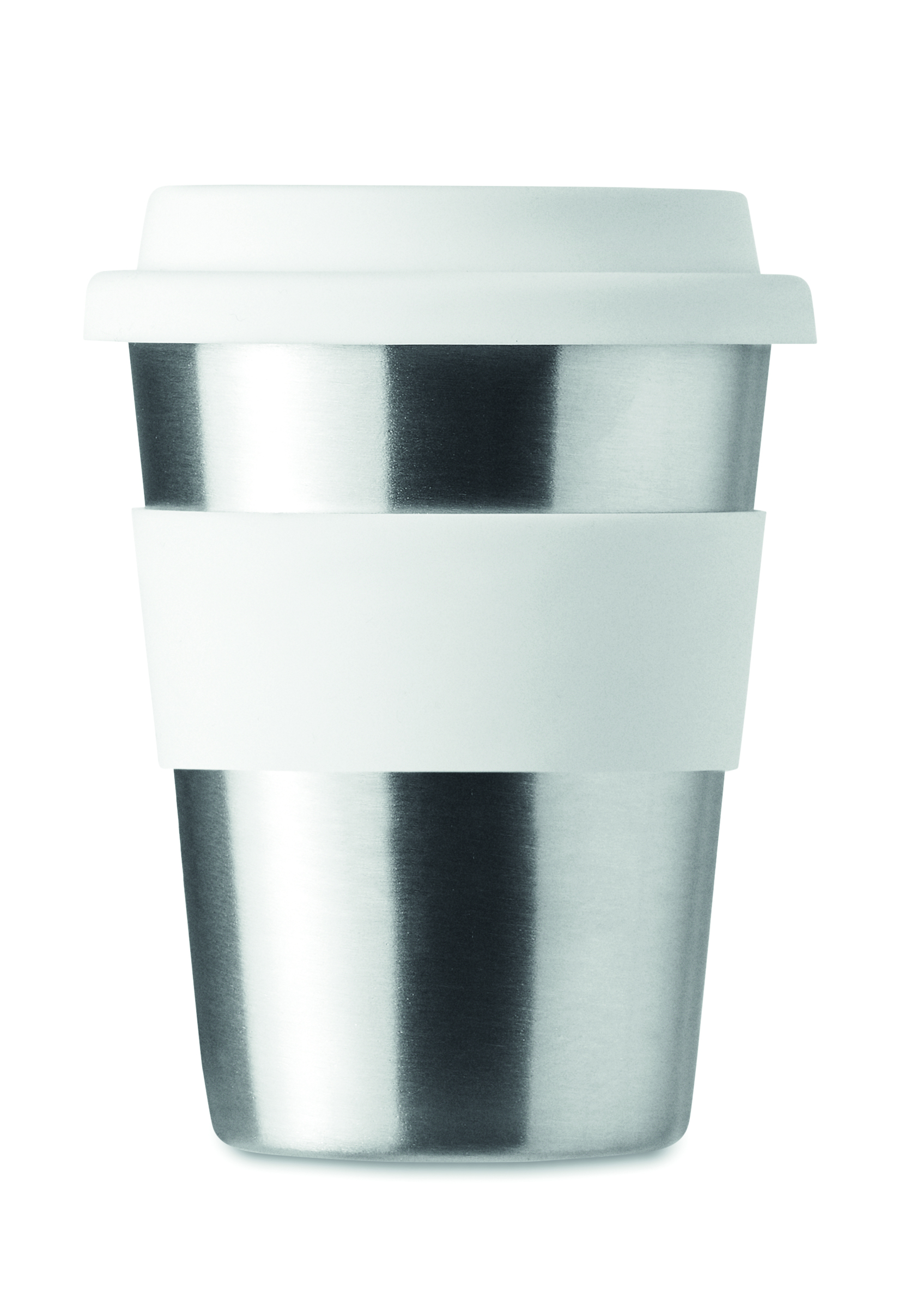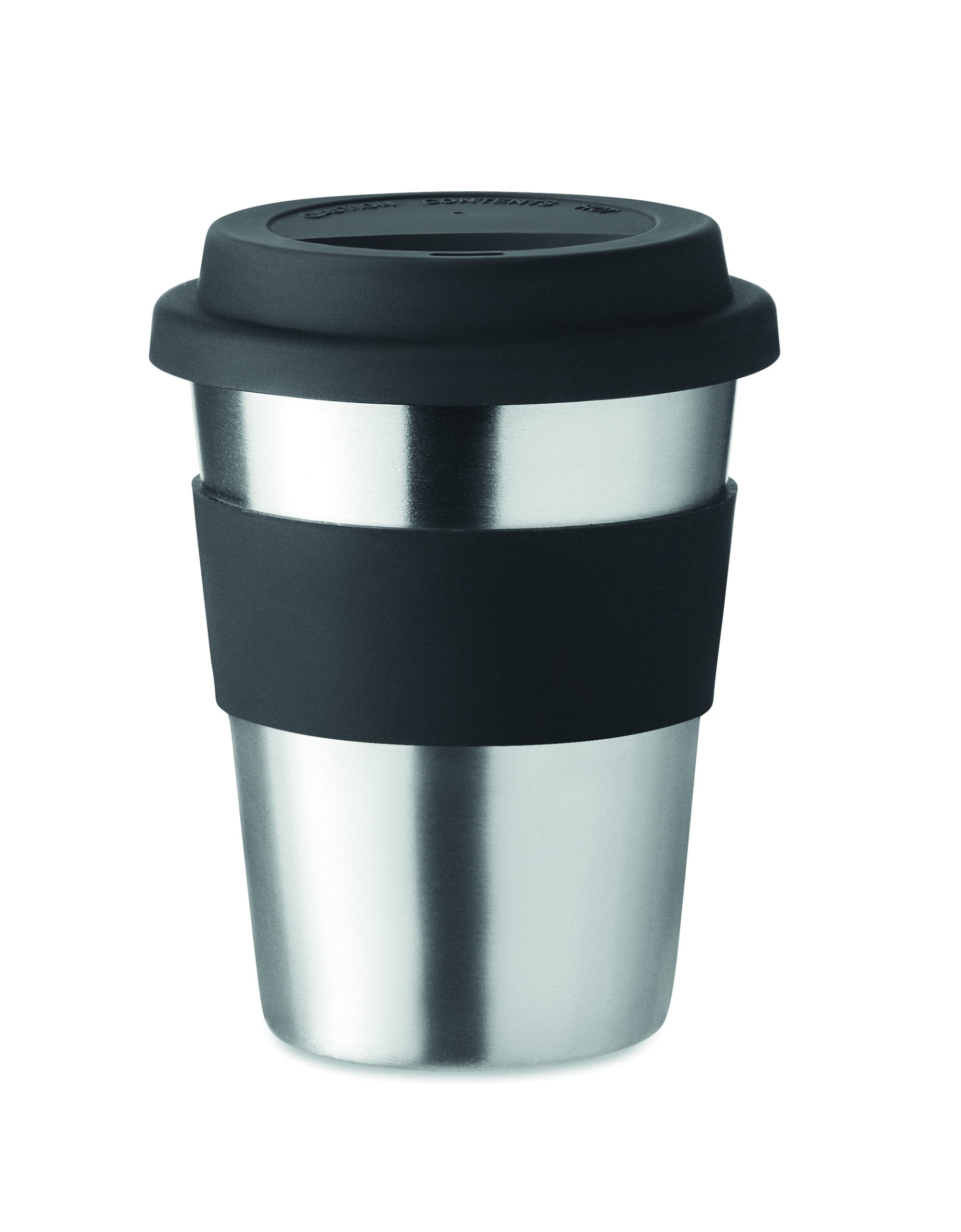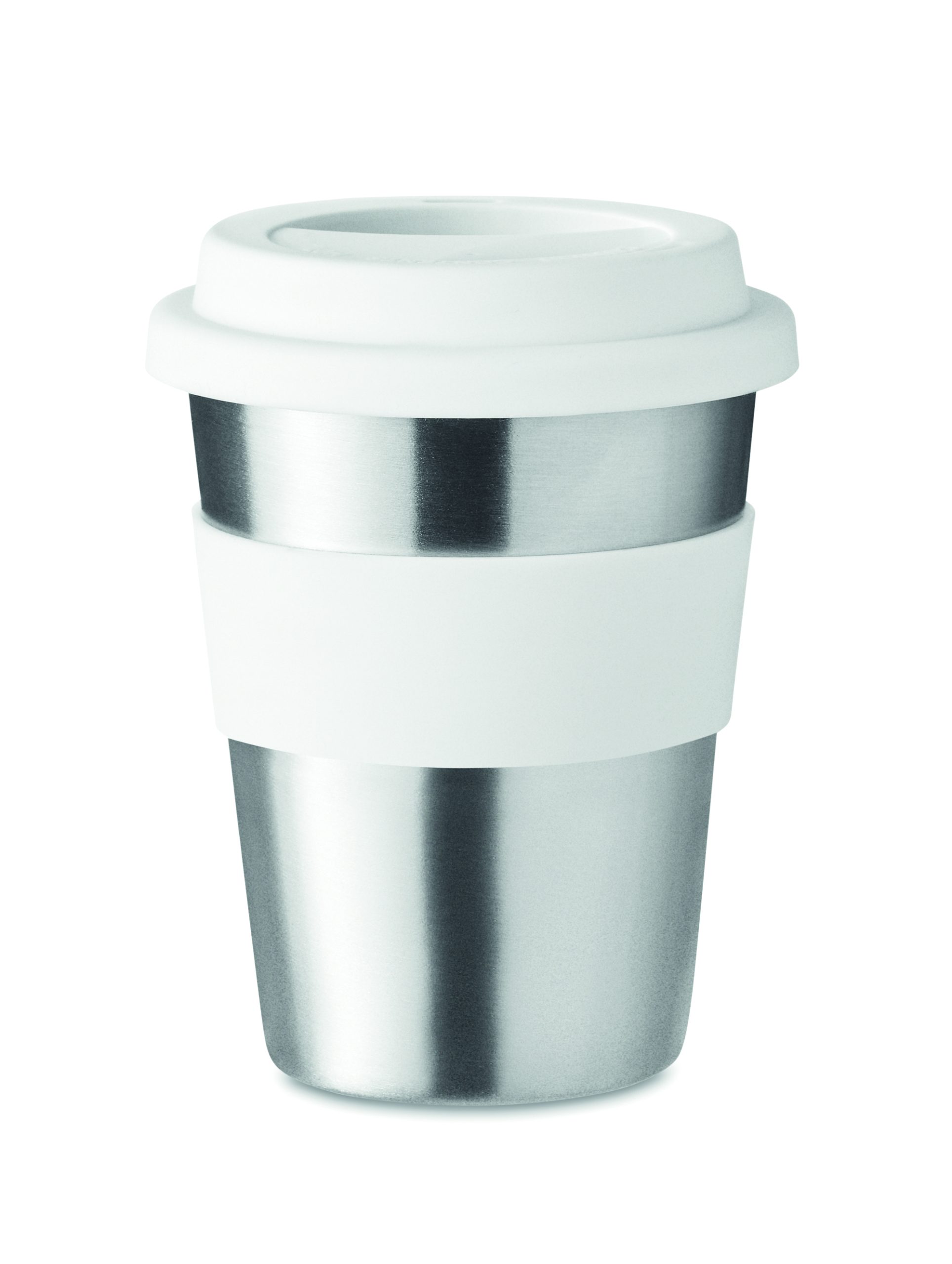 Jednościenny kubek ze stali nierdzewnej z silikonową pokrywką i uchwytem. Pojemność 350 ml. Ponieważ jest to kubek z pojedynczą ścianką, może dochodzić do wymiany ciepła.