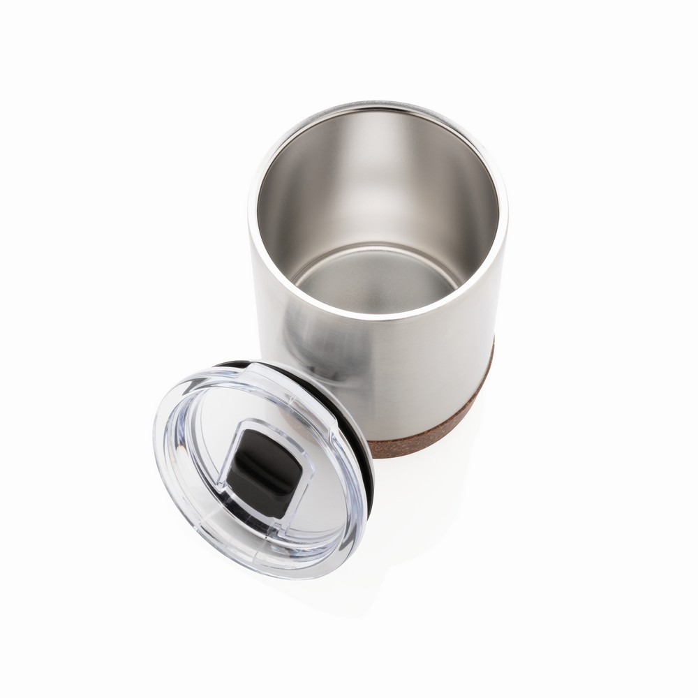 Korkowy kubek termiczny 180 ml, podwójne ścianki ze stali nierdzewnej z próżnią między ściankami, wewnątrz stal nierdzewna 304, na zewnątrz stal nierdzewna 201, korkowa podstawa, pasuje do większości ekspresów do kawy, utrzymuje temperaturę napojów gorących do 20 godzin oraz zimnych do 15 godzin