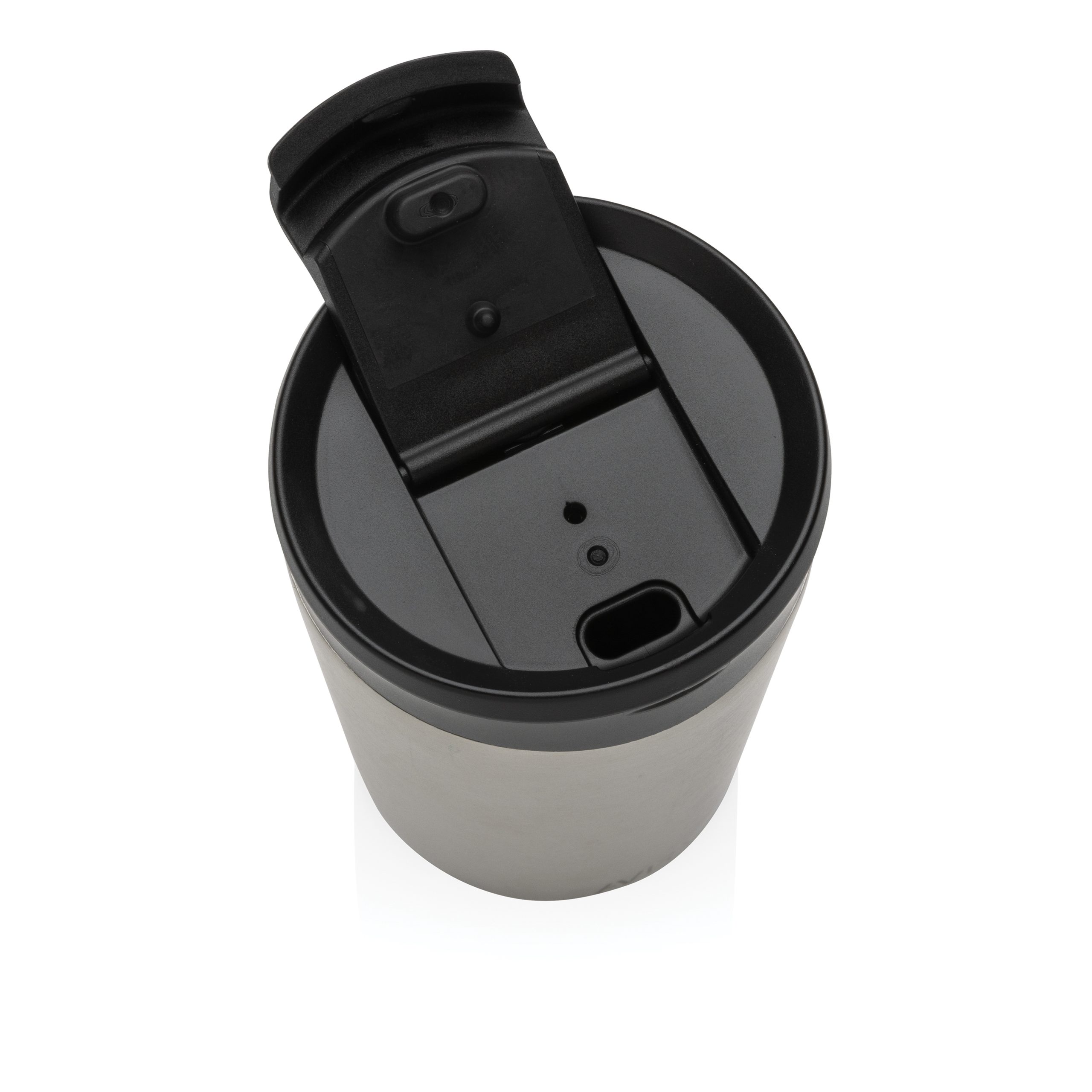 Kubek termiczny 300 ml, podwójne ścianki ze stali nierdzewnej z próżnią pomiędzy, wykonany ze stali nierdzewnej z recyklingu z certyfikatem RCS, całkowita zawartość materiałów z recyklingu obliczona na podstawie wagi całkowitej przedmiotu: 71%, w pudełku z papieru kraftowego z certyfikatem FSC®, pudełko można wykorzystać jako stojak na telefon lub doniczkę