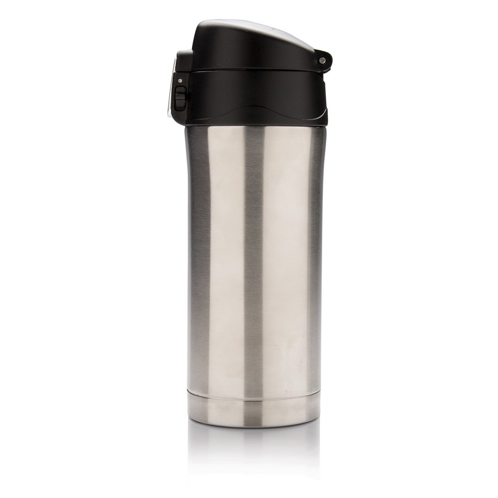 Kubek termiczny 300 ml, podwójne ścianki ze stali nierdzewnej z próżnią pomiędzy, obsługa jedną ręką, wykonany z materiałów pochodzących z recyklingu z certyfikatem RCS, całkowita zawartość materiałów z recyklingu obliczona na podstawie wagi całkowitej przedmiotu: 71%, w pudełku z papieru kraftowego z certyfikatem FSC®, utrzymuje temperaturę napojów gorących do 20 godzin oraz zimnych do 15 godzin