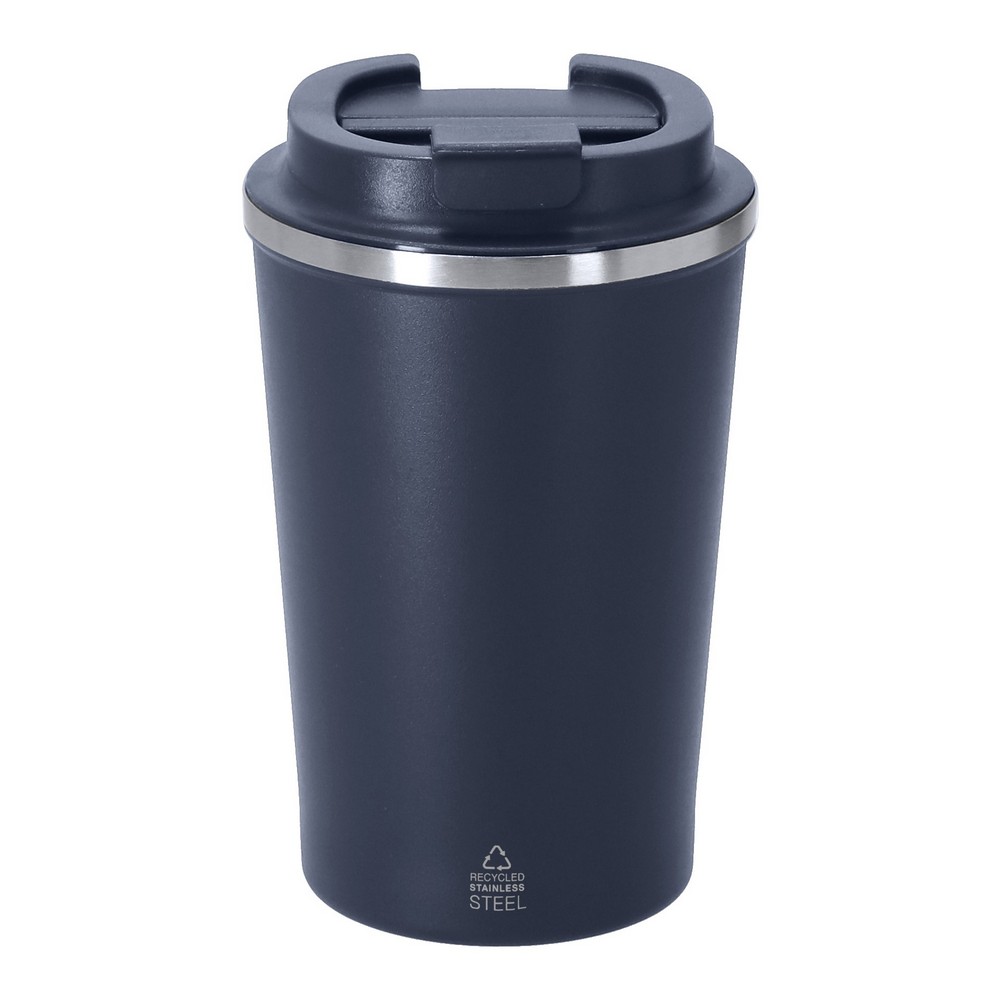 Kubek termiczny 350 ml, posiada podwójne ścianki, które spowalniają oddawanie temperatury na zewnątrz, produkt wykonany ze stali nierdzewnej z recyklingu z ceramiczną wewnętrzną powłoką