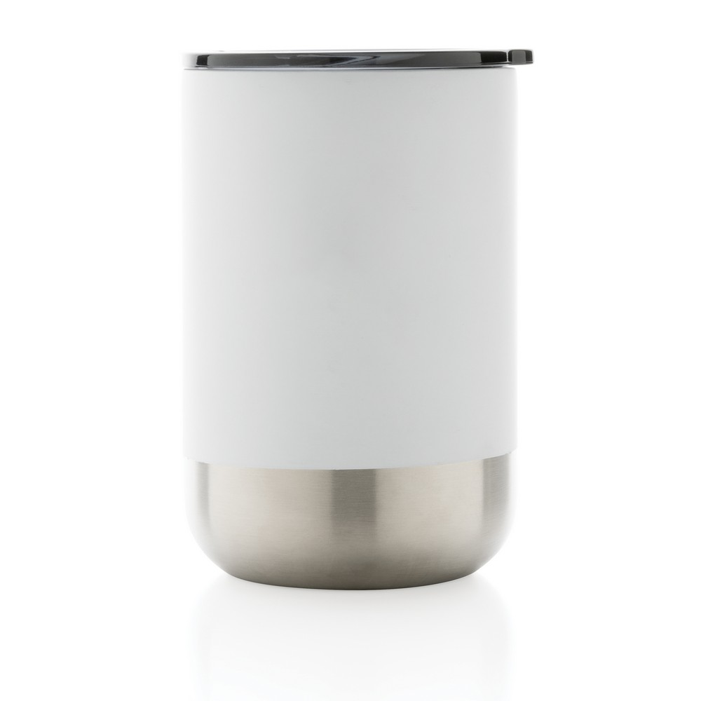 Kubek termiczny 360 ml, podwójne ścianki z próżnią pomiędzy, utrzymuje temperaturę napojów ciepłych do 3 godzin oraz zimnych do 6 godzin, wieczko zapobiegające rozlewaniu, wykonany ze stali nierdzewnej z recyklingu z certyfikatem RCS (Recycled Claim Standard) który gwarantuje, że wykorzystane materiały pochodzą z recyklingu, całkowita zawartość materiału z recyklingu obliczona w oparciu o wagę całkowitą przedmiotu: 83%, w pudełku z papieru kraftowego z certyfikatem FSC® (Forest Stewardship Council), ślad węglowy produktu: 1,01 kg CO2