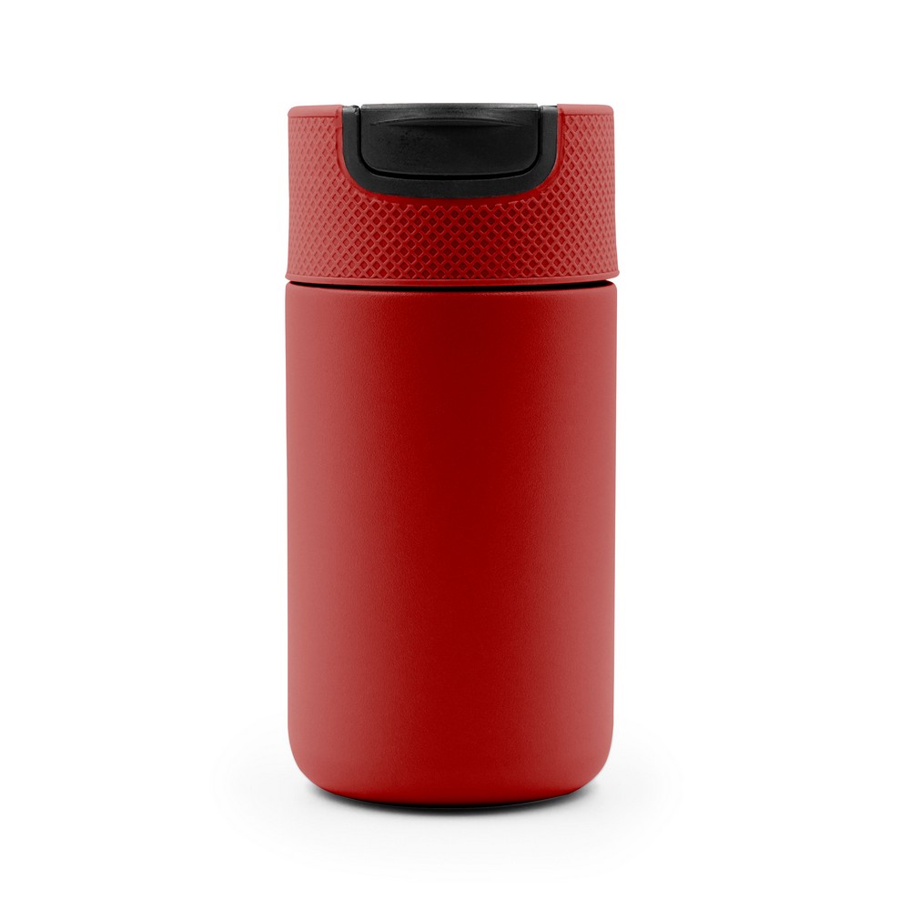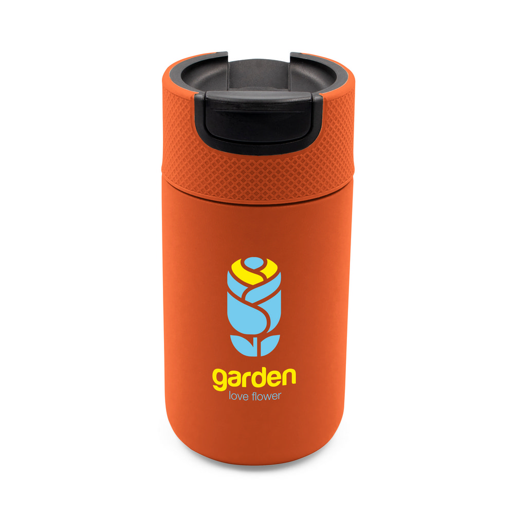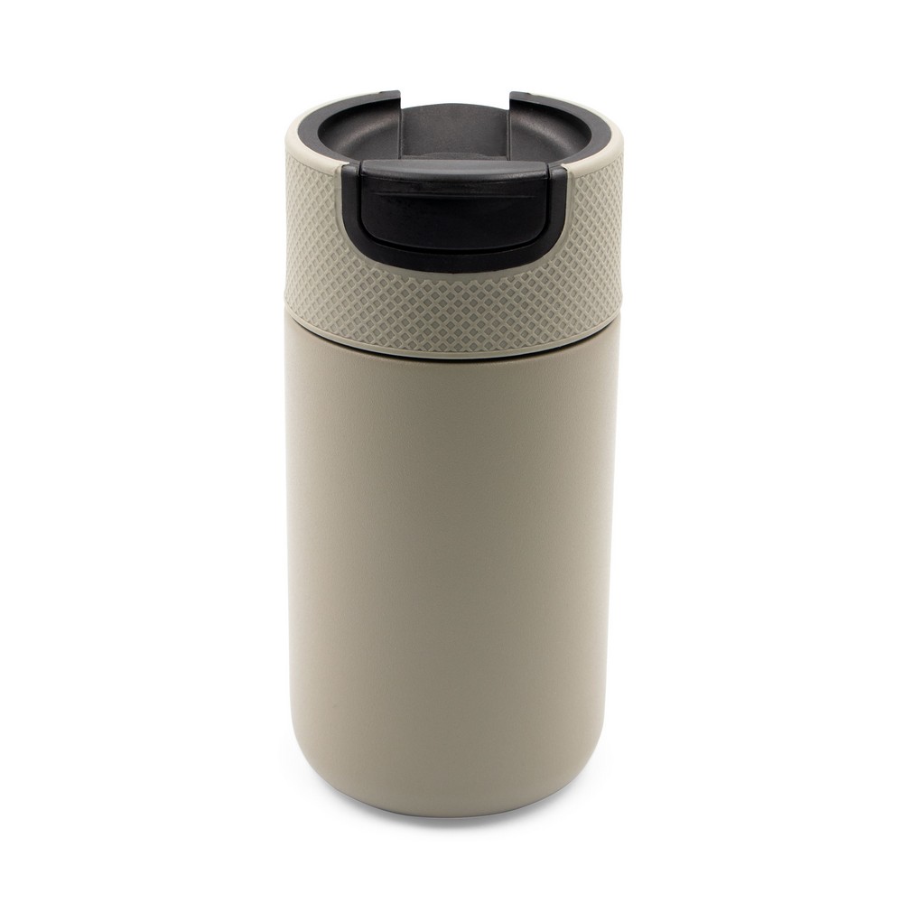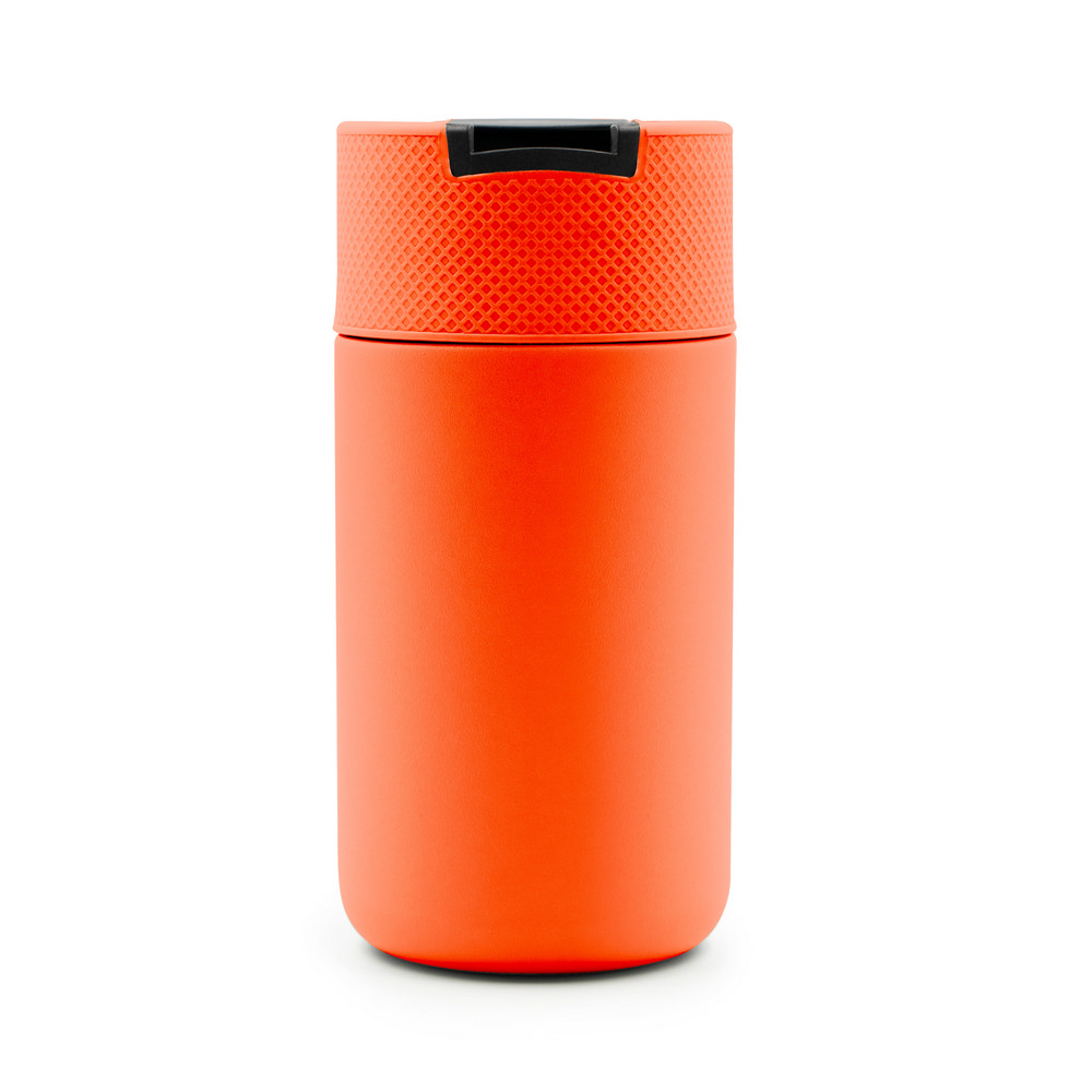Kubek termiczny 400 ml Air Gifts, posiada podwójne ścianki ze stali nierdzewnej z próżnią między ściankami, co spowalnia oddawanie temperatury na zewnątrz, zachowując funkcje termosu, plastikowe wieczko z zamknięciem umożliwiającym obsługę jedną ręką, matowe wykończenie, utrzymuje temperaturę napojów gorących do 10 godzin +leakproof