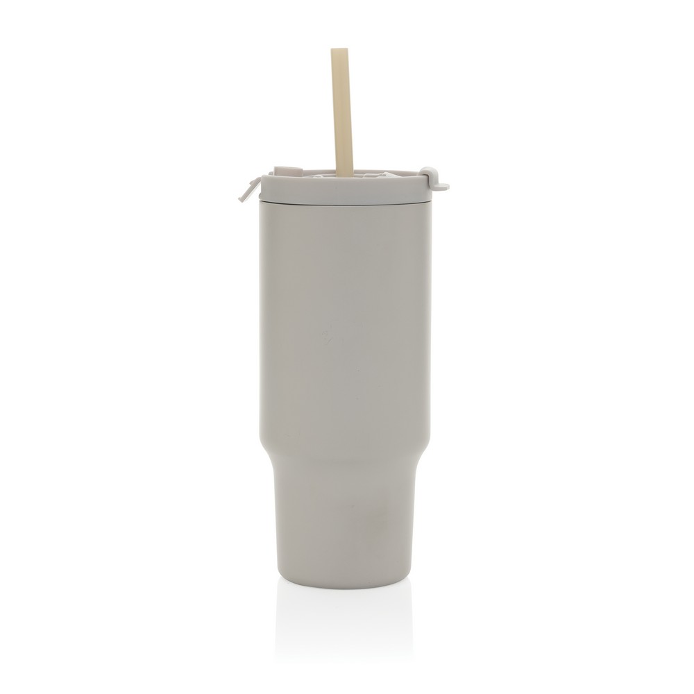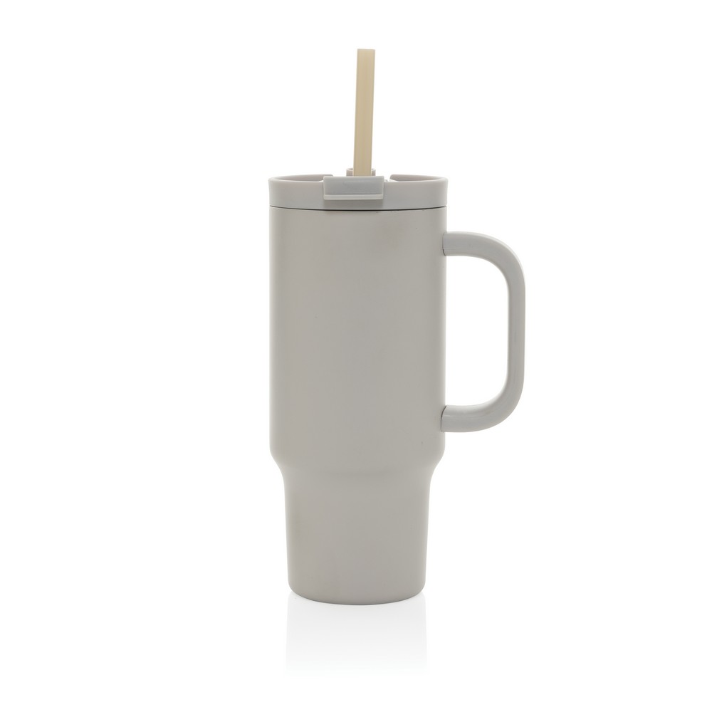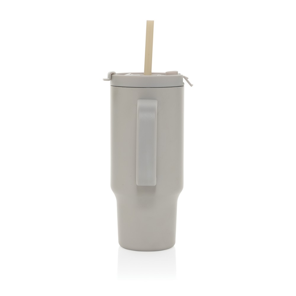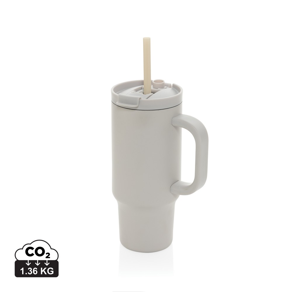 Kubek termiczny 480 ml, podwójne ścianki z próżnią pomiędzy dzięki czemu kubek posiada funkcję termosu, posiada słomkę i szeroki otwór do picia, wykonany z materiałów z recyklingu, całkowita zawartość materiałów z recyklingu obliczona na podstawie wagi całkowitej produktu: 73%