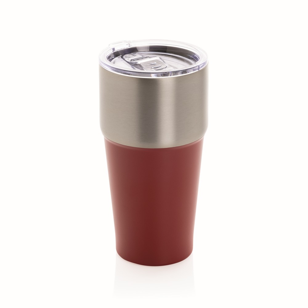 Kubek termiczny 500 ml, wykonany z materiałów z recyklingu z certyfikatem RCS, podwójne ścianki z próżnią pomiędzy, utrzymuje temperaturę napojów ciepłych do 5 godzin i zimnych do 15 godzin, wyłącznie mycie ręczne, całkowita zawartość materiałów z recyklingu obliczona na podstawie wagi całkowitej produktu: 81%