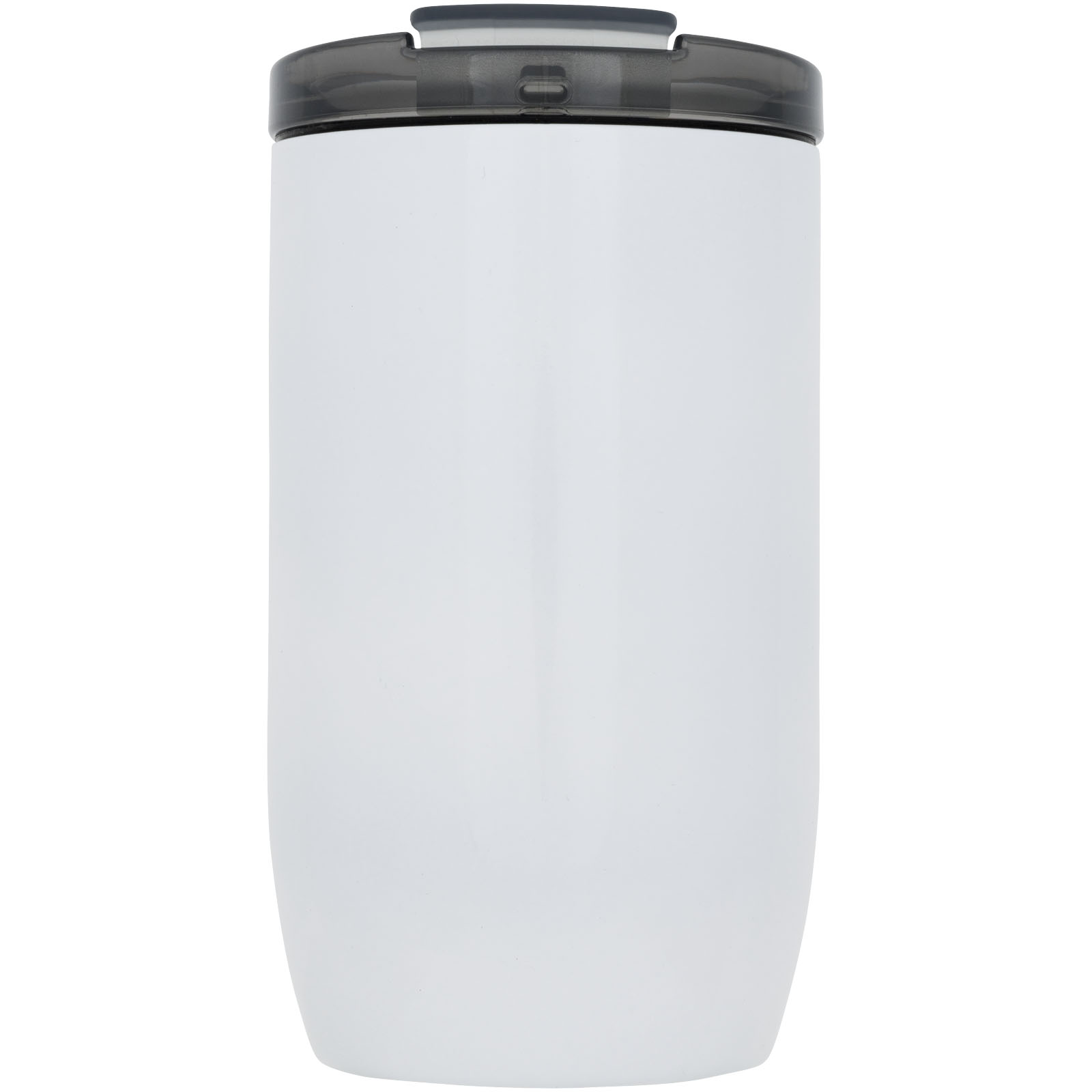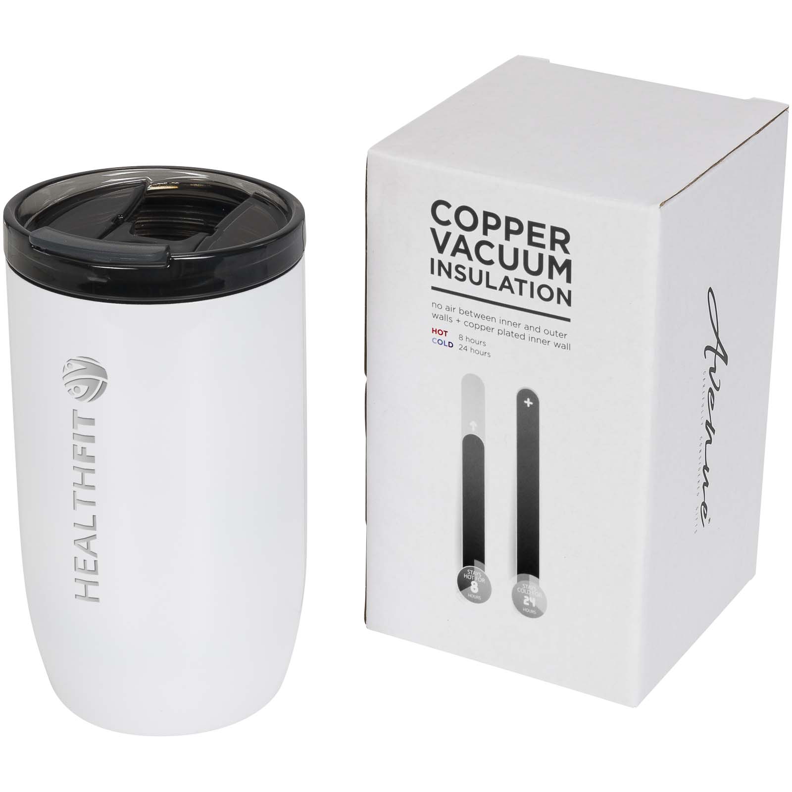 Trwały kubek termiczny o idealnym rozmiarze, świetny w podróży. Wieczko nie przecieka, ma łatwą do otwierania, szczelną klapkę. Kubek ma podwójne ścianki izolowane próżniowo oraz za pomocą miedzi, dzięki czemu izoluje bardzo skutecznie – utrzymuje gorąco napoju przez 8 godzin, a zimno przez 24 godziny. Dzięki takiej konstrukcji para nie osadza się na zewnętrzu kubka. Pojemność 380 ml. Zapakowana w pudełko upominkowe Avenue.